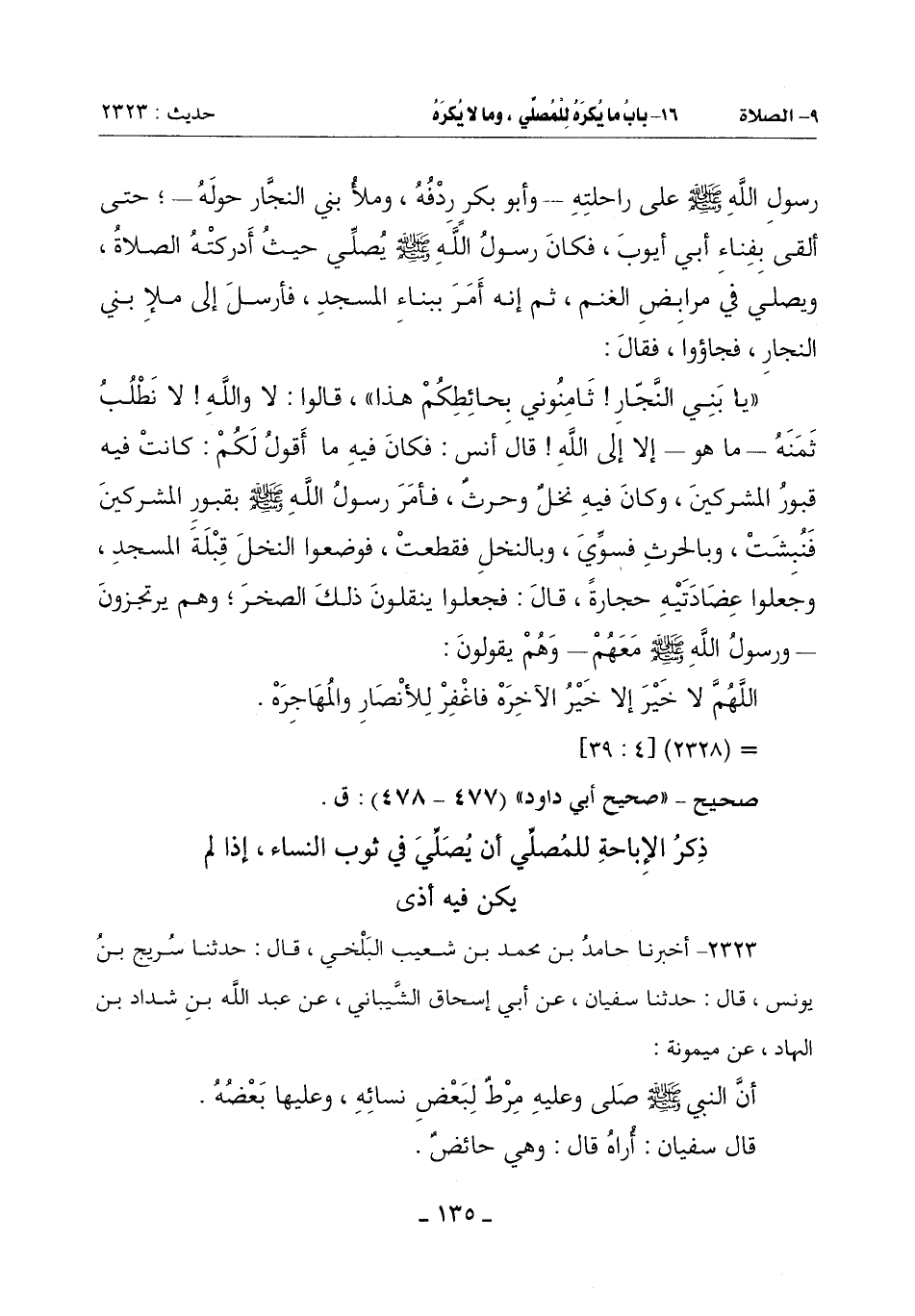 2323 - أَخْبَرَنَا حَامِدُ بْنُ مُحَمَّدِ بْنِ شُعَيْبٍ البَلخي قَالَ: حَدَّثَنَا سُرَيْجُ بْنُ يُونُسَ قَالَ: حَدَّثَنَا سُفْيَانُ عَنْ أَبِي إِسْحَاقَ الشَّيْبَانِيِّ عَنْ عَبْدُ اللَّهِ بْنُ شَدَّادِ بْنِ الْهَادِ عَنْ مَيْمُونَةَ: