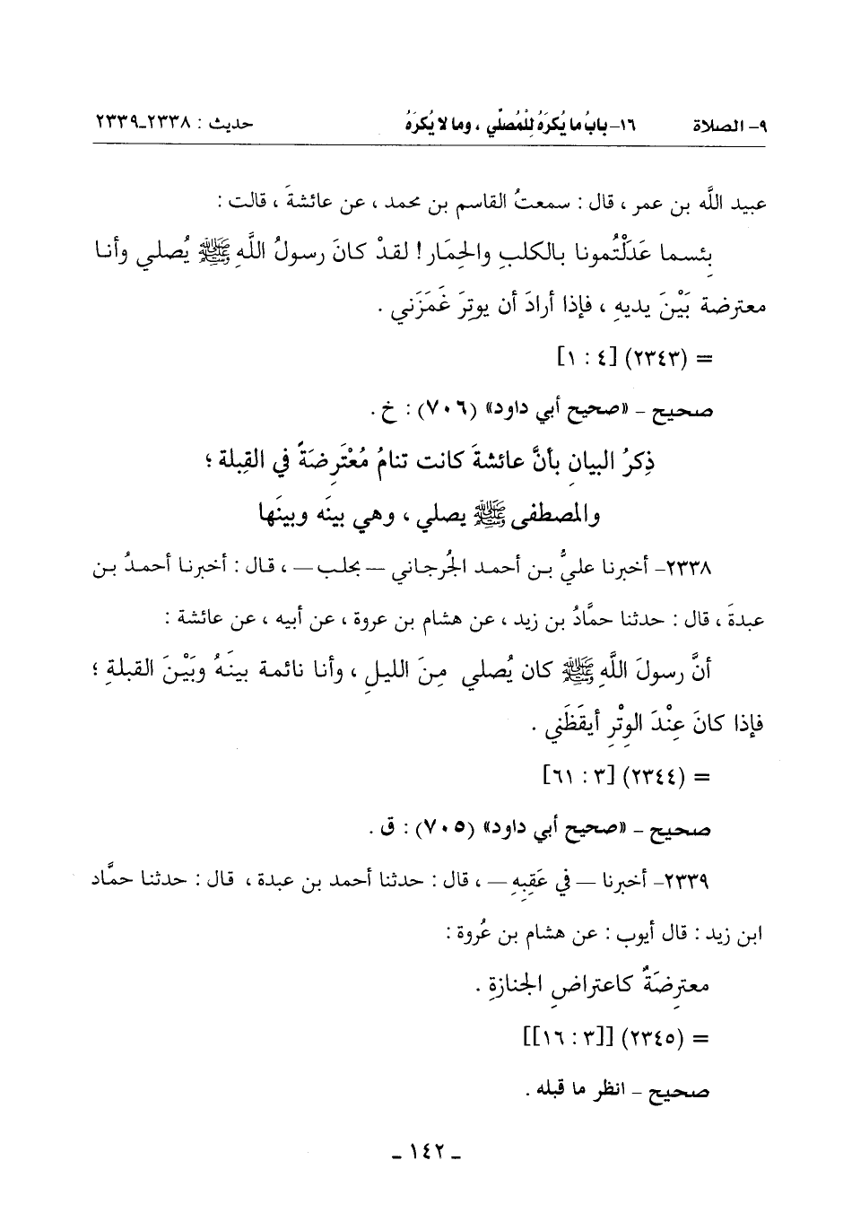2338 - أَخْبَرَنَا عَلِيُّ بْنُ أَحْمَدَ الْجُرْجَانِيُّ بِحَلَبَ قَالَ: أَخْبَرَنَا أَحْمَدُ بْنُ عَبْدَةَ قَالَ: حَدَّثَنَا حَمَّادُ بْنُ زَيْدٍ عَنْ هِشَامِ بْنِ عُرْوَةَ عَنْ أَبِيهِ عَنْ عَائِشَةَ