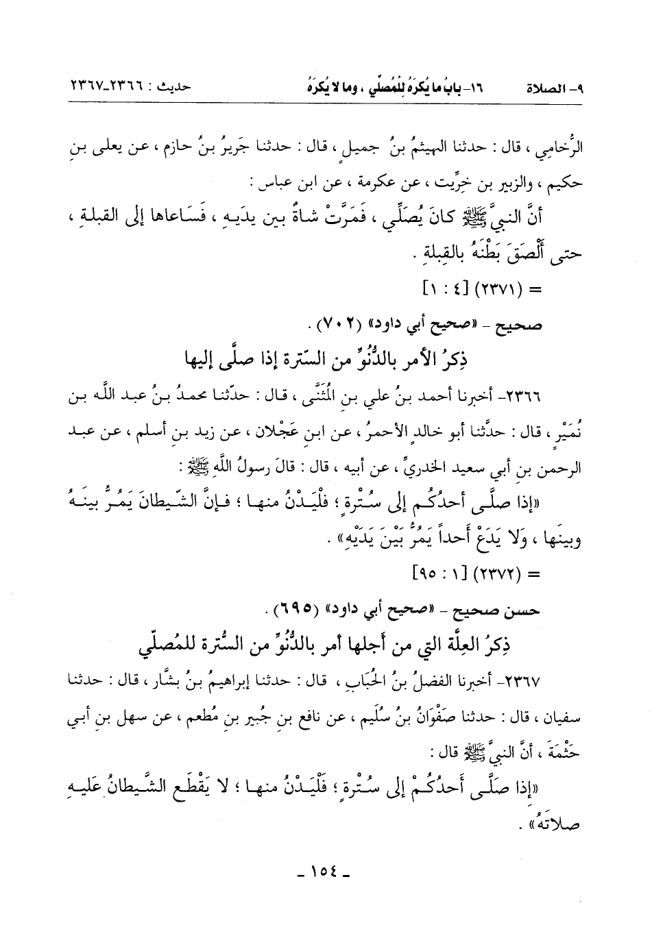 (إِذَا صَلَّى أَحَدُكُمْ إِلَى سُتْرَةٍ فَلْيَدْنُ مِنْهَا لا يقطع الشيطان عليه صلاته) -[155]-