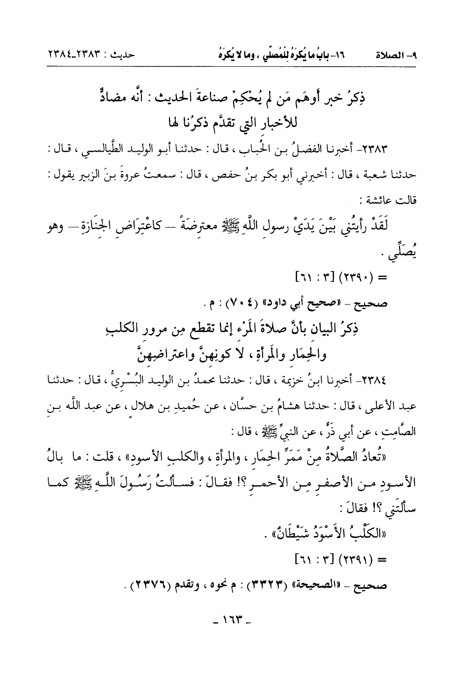 ذِكْرُ الْبَيَانِ بِأَنَّ صَلَاةَ الْمَرْءِ إِنَّمَا تُقْطَعُ مِنْ مُرُورِ الْكَلْبِ وَالْحِمَارِ وَالْمَرْأَةِ لَا كَوْنِهِنَّ واعتراضهن