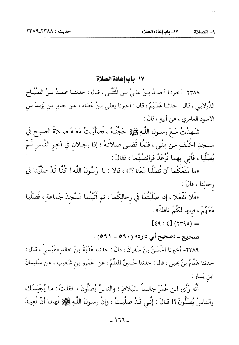 17 - بَابُ إِعَادَةِ الصَّلَاةِ