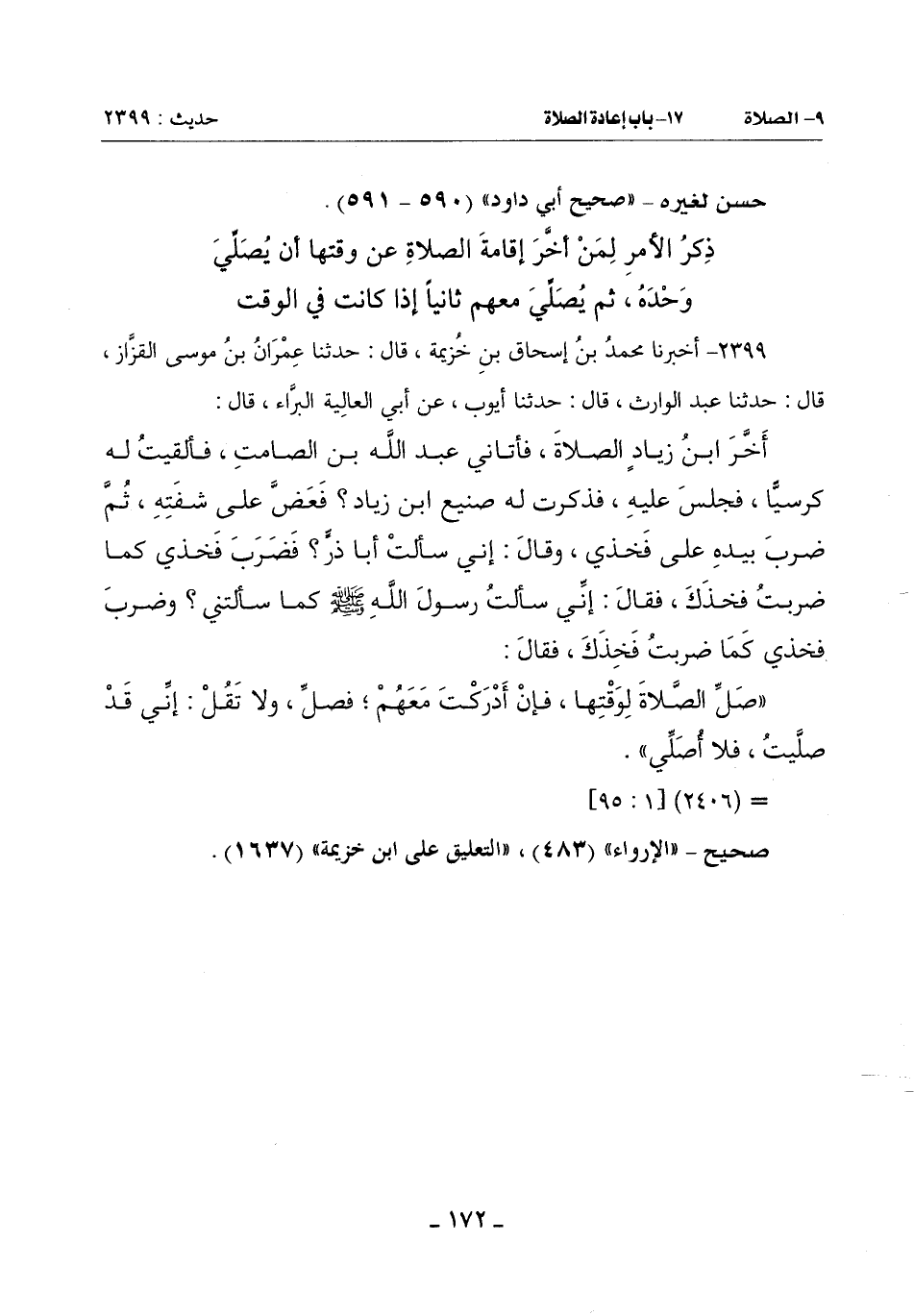 2399 - أَخْبَرَنَا مُحَمَّدُ بْنُ إِسْحَاقَ بْنِ خُزَيْمَةَ قَالَ: حَدَّثَنَا عِمْرَانُ بْنُ مُوسَى الْقَزَّازُ قَالَ: حَدَّثَنَا عَبْدِ الْوَارِثِ قَالَ: حَدَّثَنَا أَيُّوبُ عَنْ أَبِي الْعَالِيَةِ الْبَرَاءِ قَالَ: