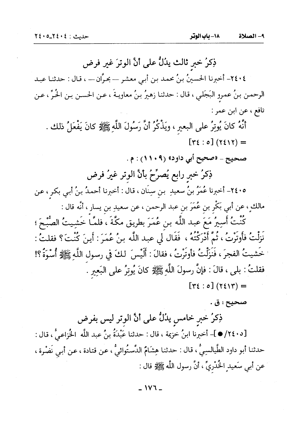 ذِكْرُ خبرٍ رَابِعٍ يصرِّح بِأَنَّ الْوِتْرَ غَيْرُ فرض