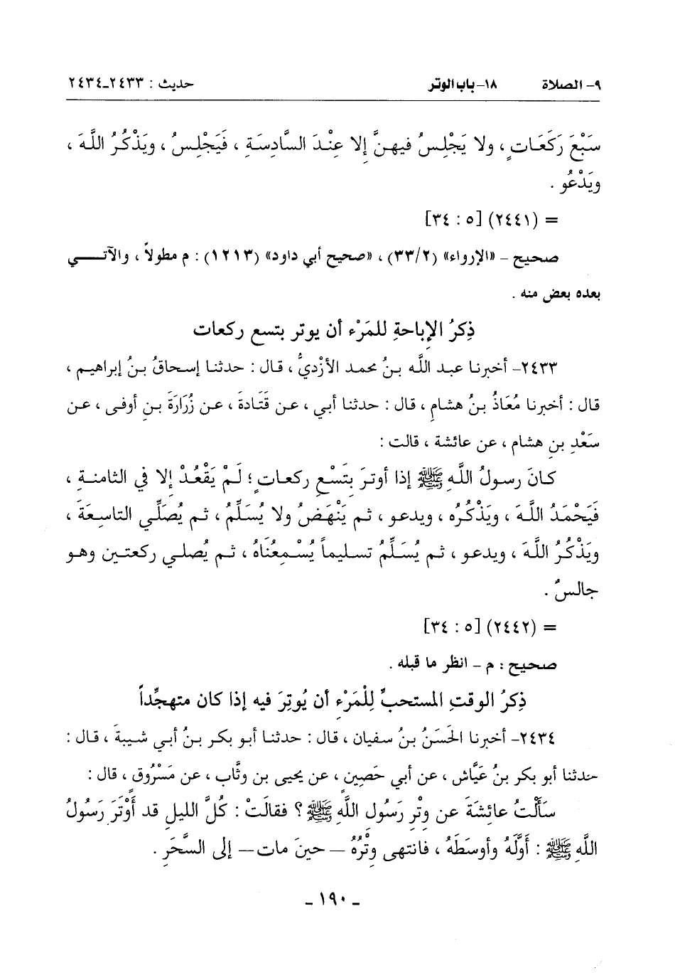 ذِكْرُ الْإِبَاحَةِ لِلْمَرْءِ أَنْ يُوتِرَ بِتِسْعِ رَكَعَاتٍ