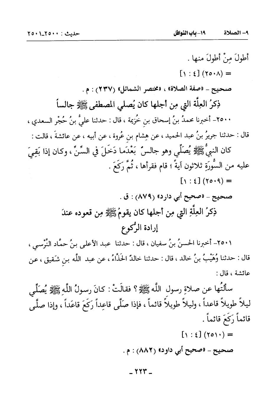 2501 - أَخْبَرَنَا الْحَسَنُ بْنُ سُفْيَانَ قَالَ: حَدَّثَنَا عَبْدُ الْأَعْلَى بْنُ حَمَّادٍ النَّرْسِيُّ قَالَ: حَدَّثَنَا وُهَيْبُ بْنُ خَالِدٍ قَالَ: حَدَّثَنَا خَالِدٍ الْحَذَّاءِ عَنْ عَبْدِ اللَّهِ بْنِ شَقِيقٍ عَنْ عَائِشَةَ قَالَ:
