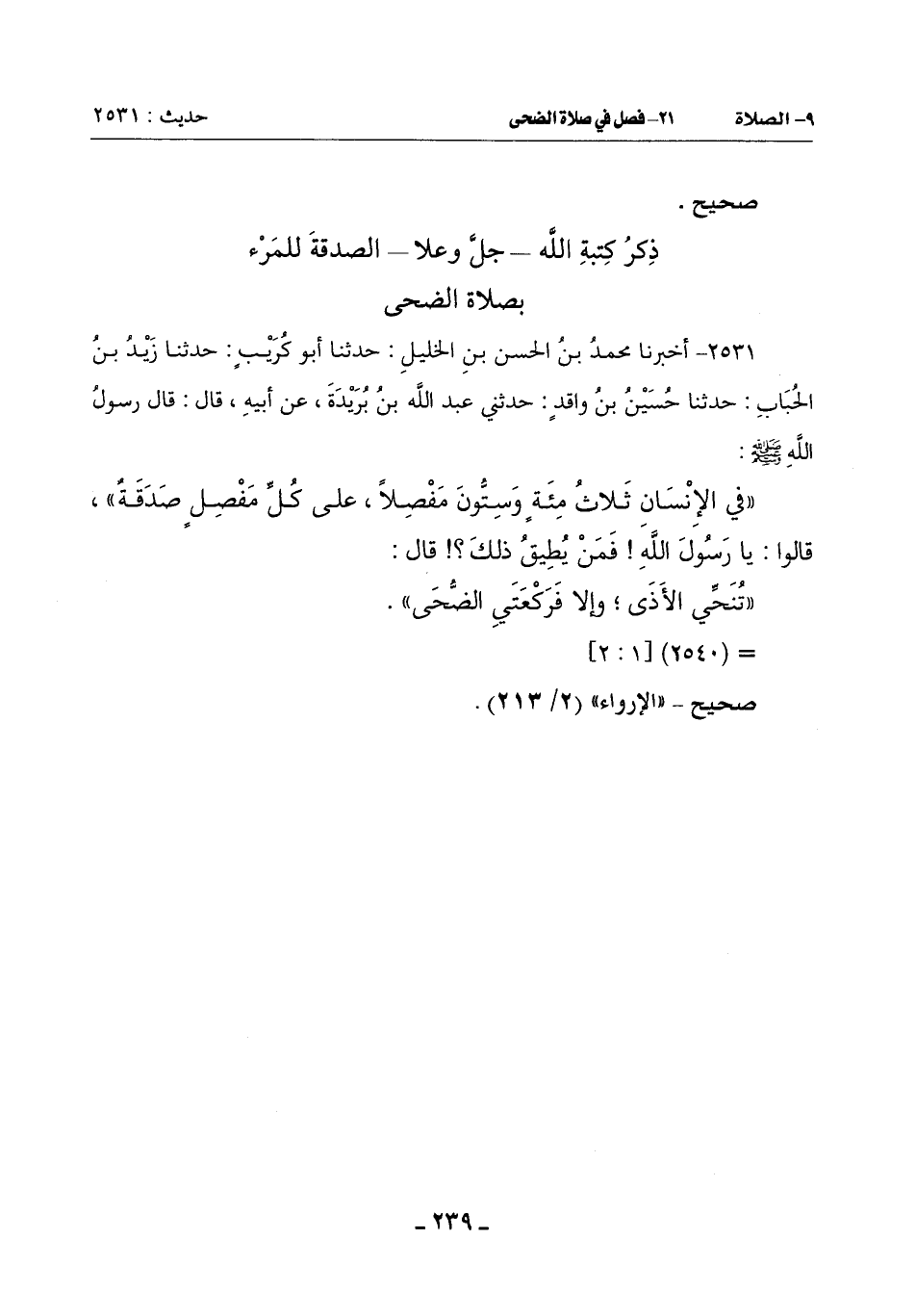 ذِكْرُ كِتْبَةِ اللَّهِ ـ جَلَّ وَعَلَا ـ الصَّدَقَةَ لِلْمَرْءِ بصلاة الضحى