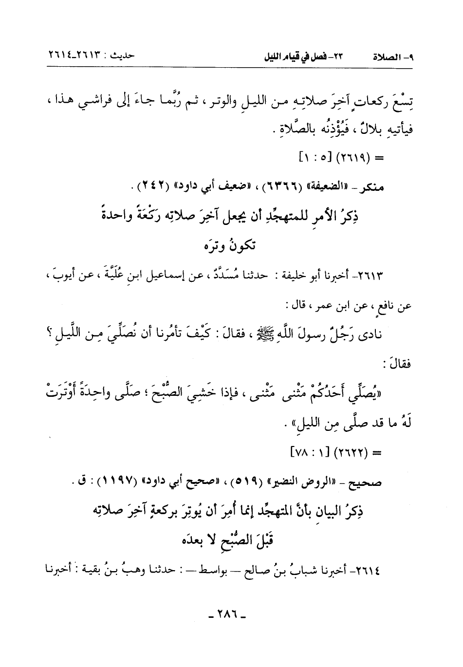 2613 - أَخْبَرَنَا أَبُو خَلِيفَةَ حَدَّثَنَا مُسَدَّدٌ عَنْ إِسْمَاعِيلَ بْنِ عَلَيْهِ عَنْ أَيُّوبَ عَنْ نَافِعٍ عَنِ ابْنِ عُمَرَ قَالَ:
