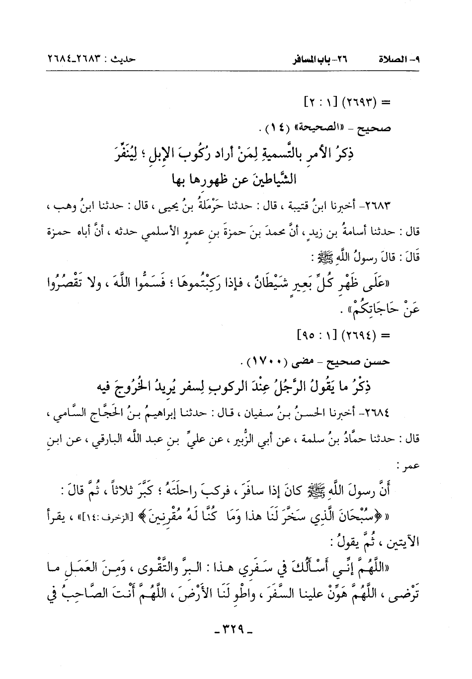 (عَلَى ظَهْرِ كُلِّ بَعِيرٍ شَيْطَانٌ فَإِذَا رَكِبْتُمُوهَا فَسَمُّوا اللَّهَ وَلَا تَقْصُرُوا عَنْ حَاجَاتِكُمْ)