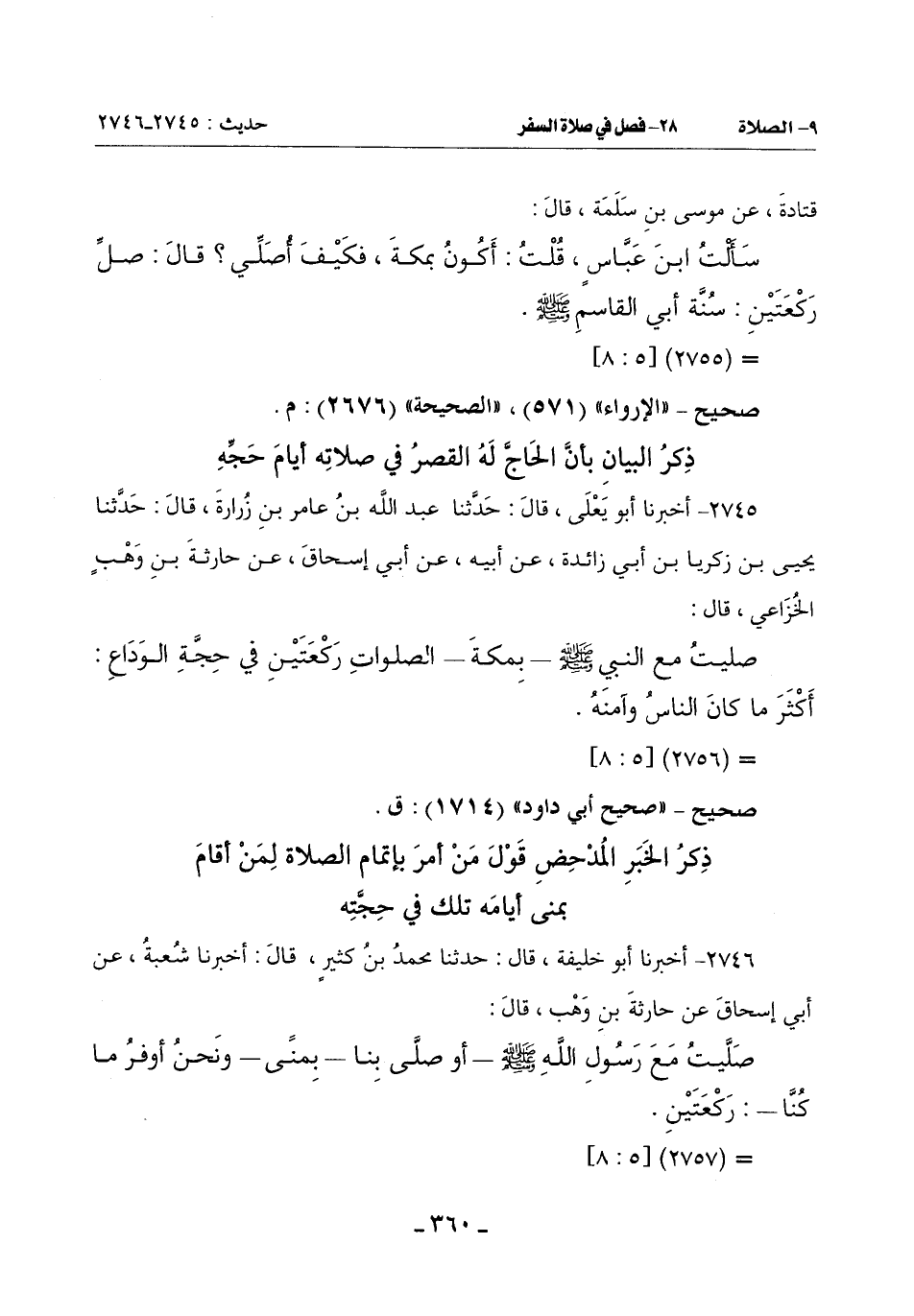 ذِكْرُ الْخَبَرِ الْمُدْحِضِ قَوْلَ مَنْ أَمَرَ بِإِتْمَامِ الصَّلَاةِ لِمَنْ أَقَامَ بِمِنًى أَيَّامَهُ تِلْكَ فِي حجته
