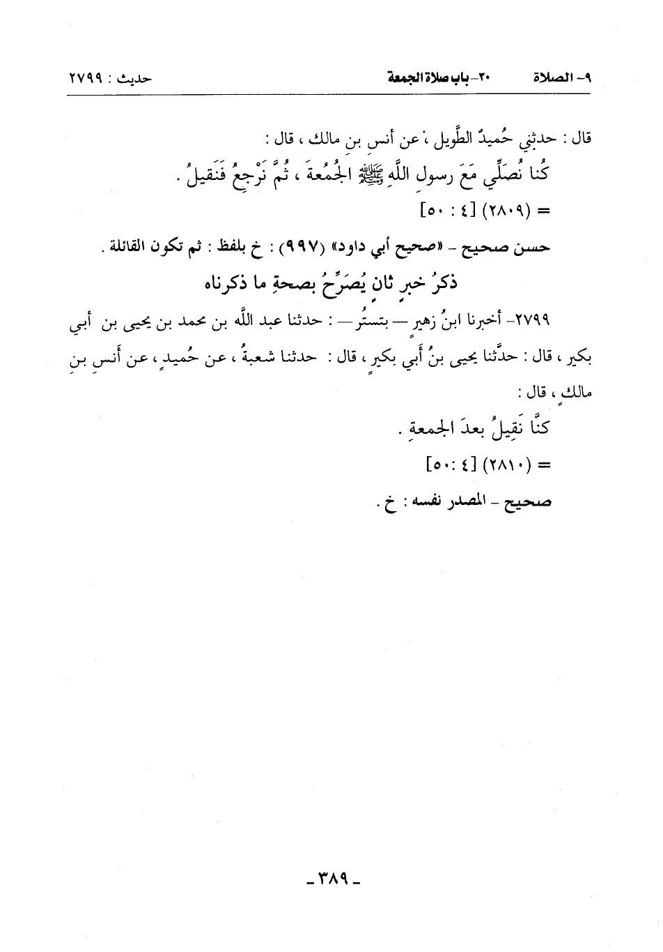 2799 - أَخْبَرَنَا ابْنُ زُهَيْرٍ بِتُسْتَرَ حَدَّثَنَا عَبْدُ اللَّهِ بْنُ مُحَمَّدِ بْنِ يَحْيَى بْنِ أَبِي بُكَيْرٍ قال: حدثنا يحيى بن بُكَيْرٍ قَالَ: حَدَّثَنَا شُعْبَةُ عَنْ حُمَيْدٍ عَنِ أنَسِ بْنِ مَالِكٍ قَالَ: