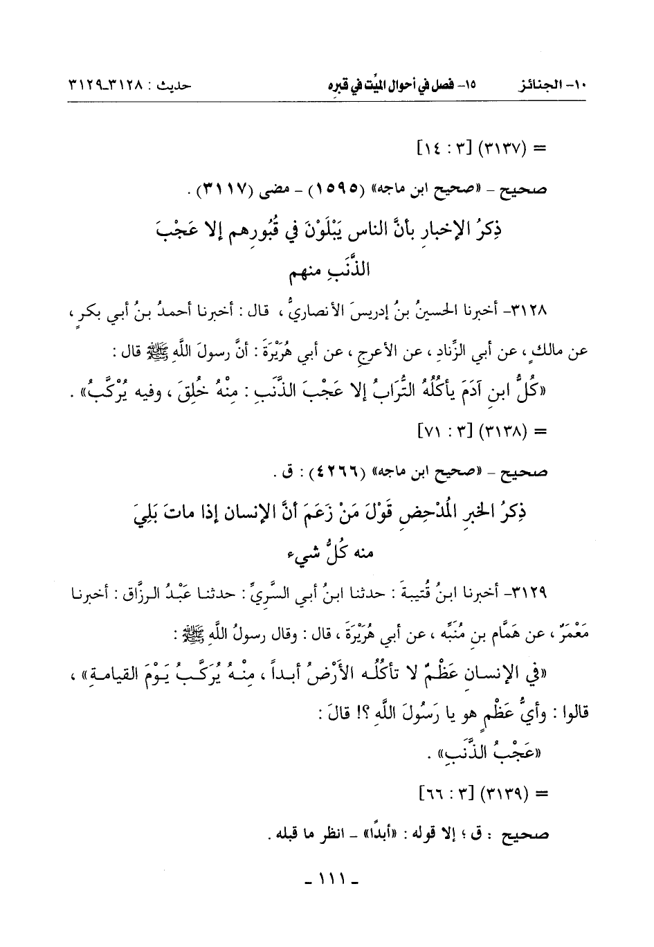 (كُلُّ ابْنِ آدَمَ يَأْكُلُهُ التُّرَابُ إِلَّا عجب الذنب منه خُلِقَ وفيه يُرْكَّبُ)
