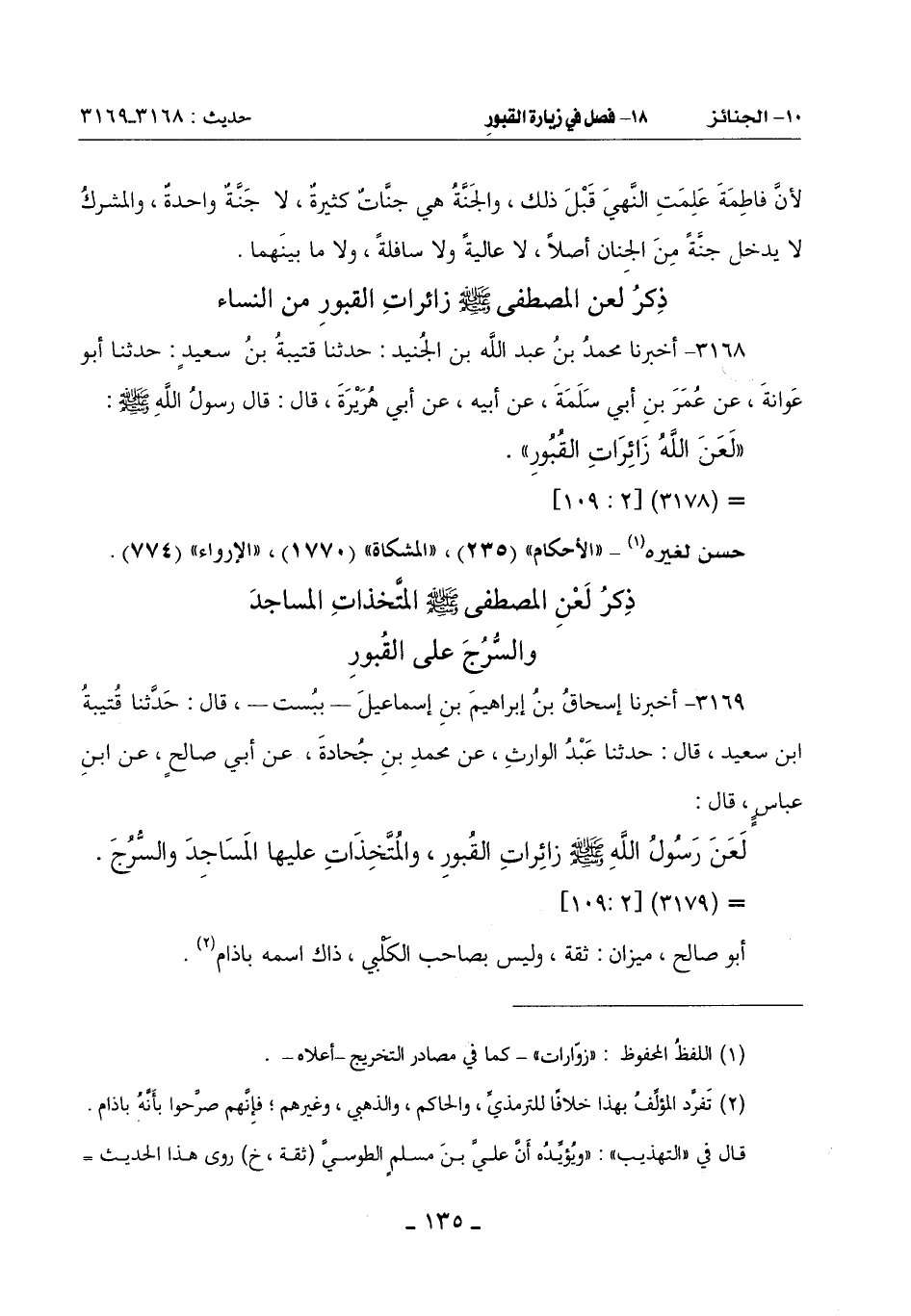 (¬1) اللفظ المحفوظ: ((زوارات)) ـ كما في مصادر التخريج أعلاه ـ.