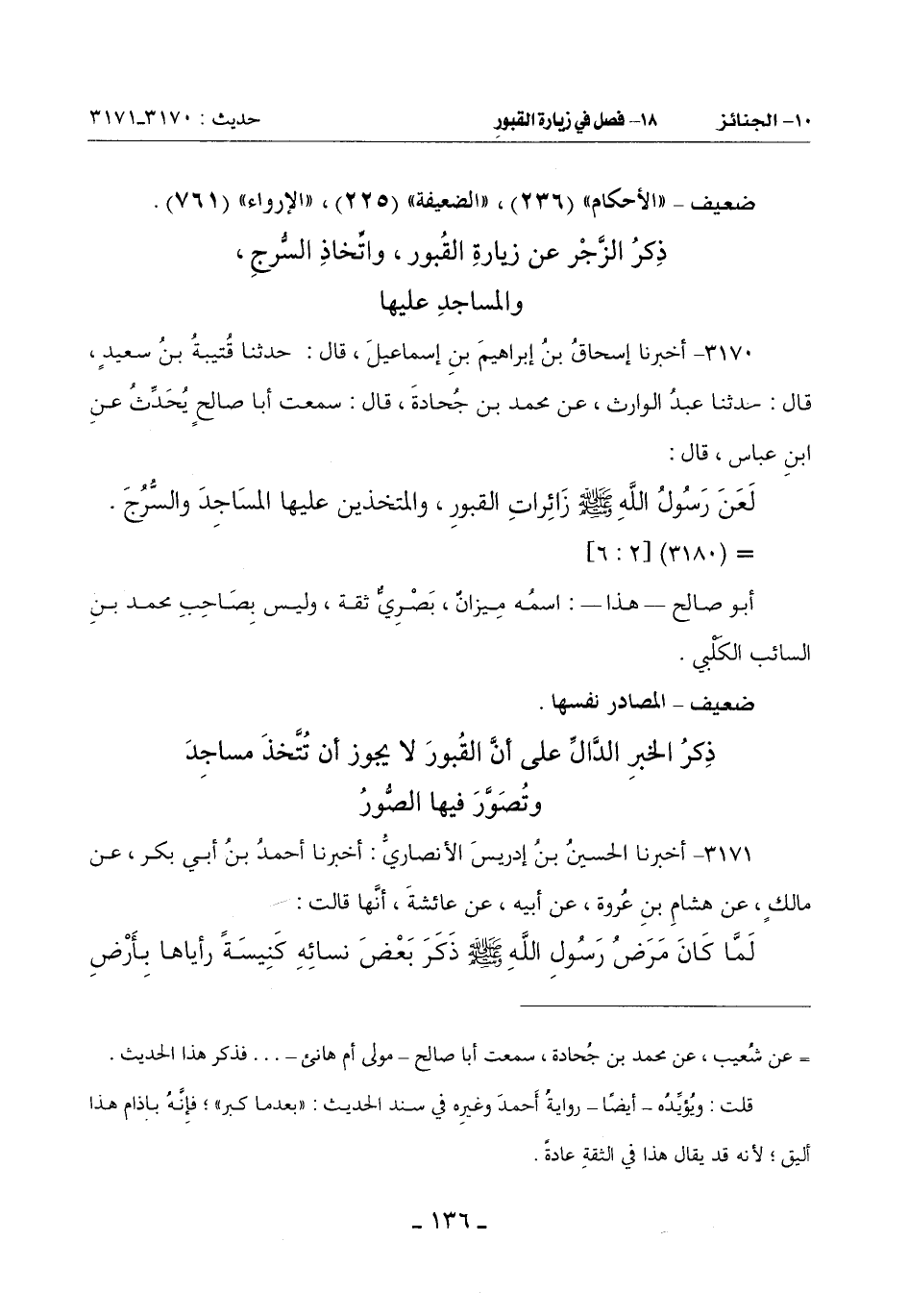 Qصحيح - ((تحذير الساجد)) , ((أحكام الجنائز)) (278): ق.