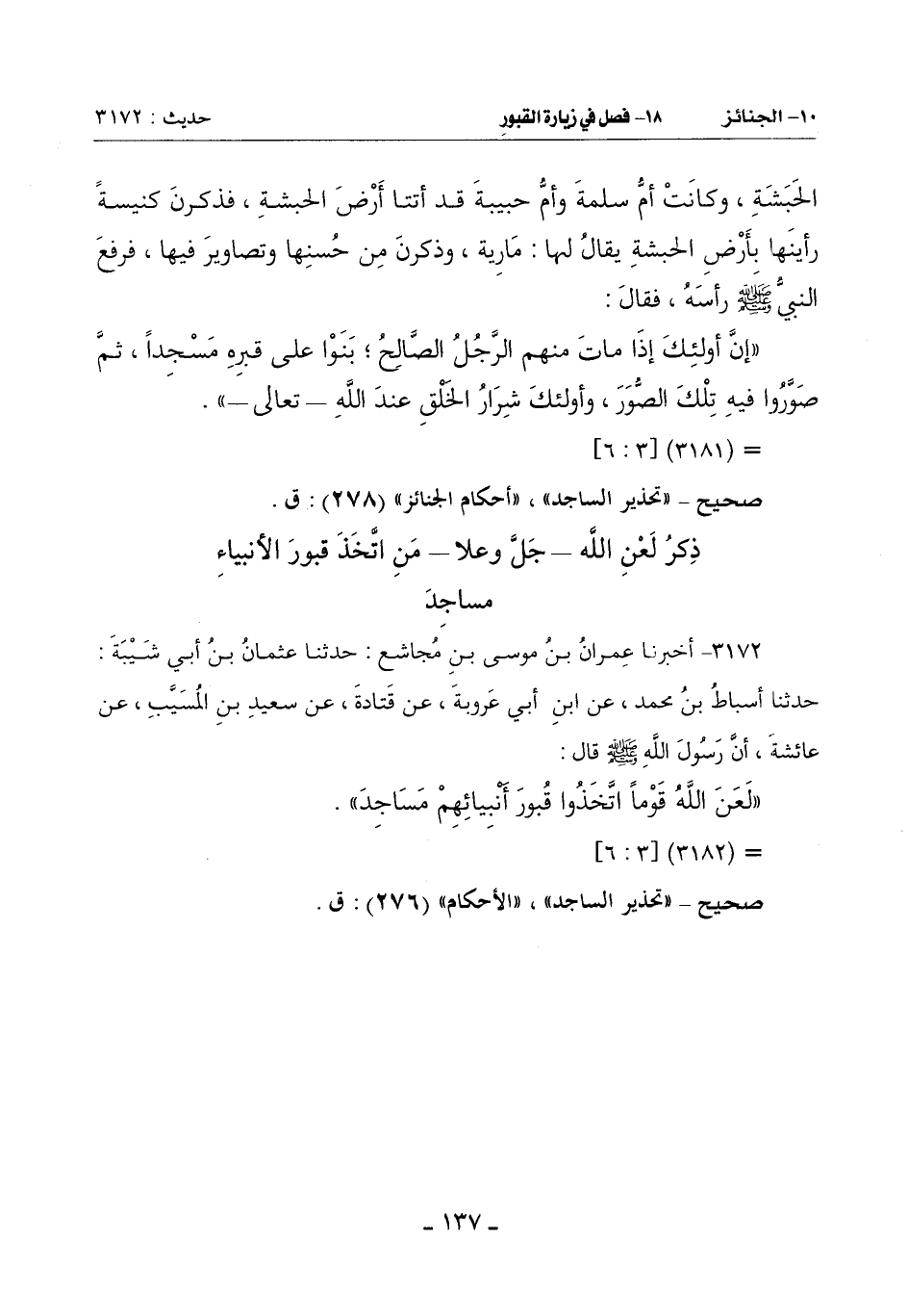 Qصحيح - ((تحذير الساجد)) , ((الأحكام)) (276): ق.