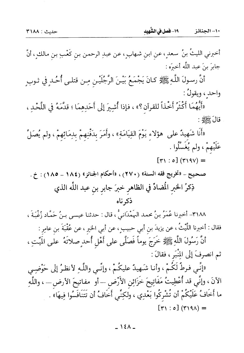 3188 - أَخْبَرَنَا عُمَرُ بْنُ مُحَمَّدٍ الْهَمْدَانِيُّ قَالَ: حَدَّثَنَا عِيسَى بْنُ حَمَّادِ زُغْبَةَ فَقَالَ: أَخْبَرَنَا اللَّيْثُ عَنْ يَزِيدَ بْنِ أَبِي حَبِيبٍ عَنْ أَبِي الْخَيْرِ عَنْ عُقْبَةَ بْنِ عَامِرٍ: