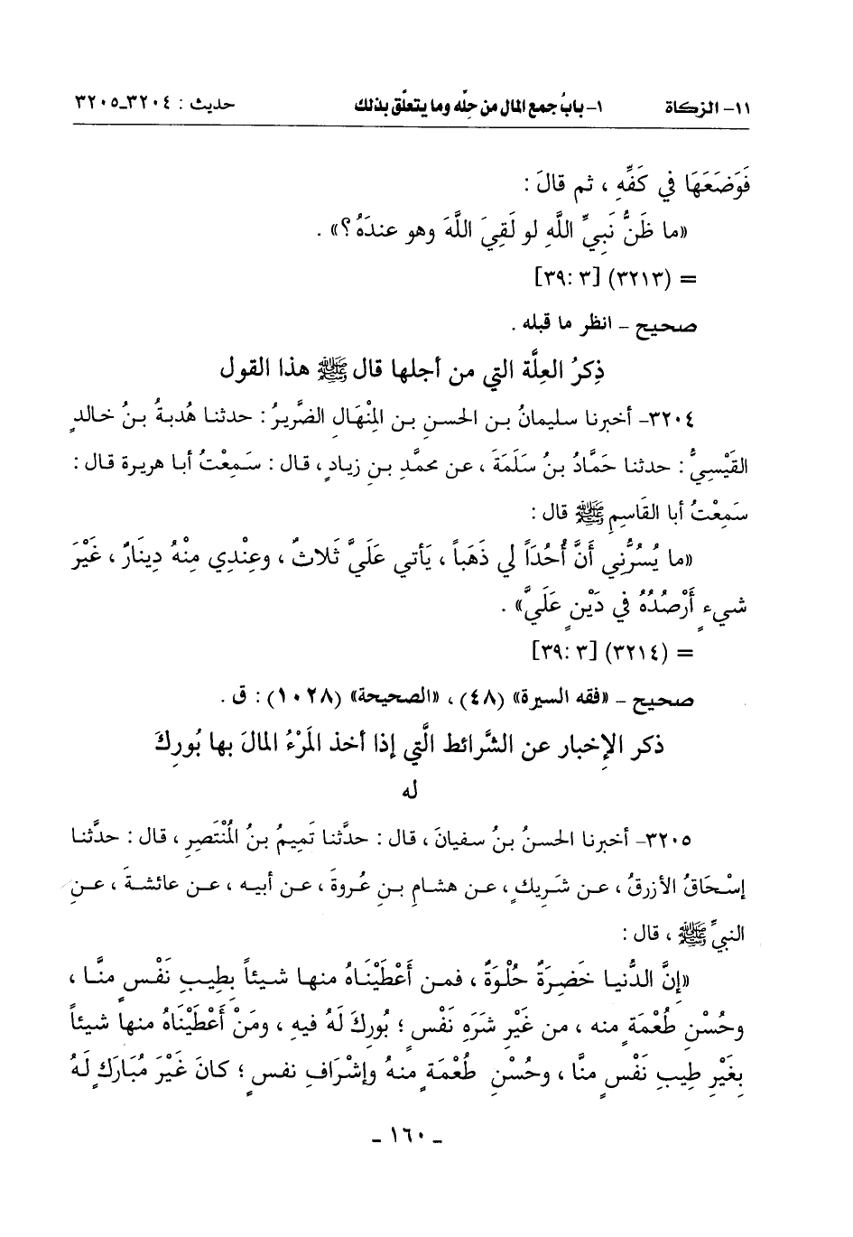 (مَا يَسُرُّنِي أَنَّ أحُداً لِي ذَهَبًا يَأْتِي عَلَيَّ ثَلَاثٌ وَعِنْدِي مِنْهُ دِينَارٌ غَيْرَ شيءٍ أرصُدُهُ فِي دَيْنٍ عليَّ)