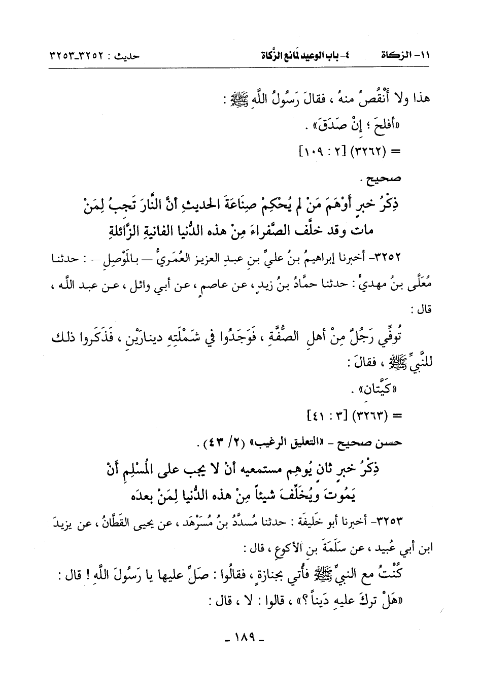 ذِكْرُ خَبَرٍ أَوْهَمَ مَنْ لَمْ يُحْكِمْ صِنَاعَةَ الْحَدِيثِ أَنَّ النَّارَ تَجِبُ لِمَنْ مَاتَ وَقَدْ خلَّف الصَّفْرَاءَ مِنْ هَذِهِ الدُّنْيَا الْفَانِيَةِ الزَّائِلَةِ