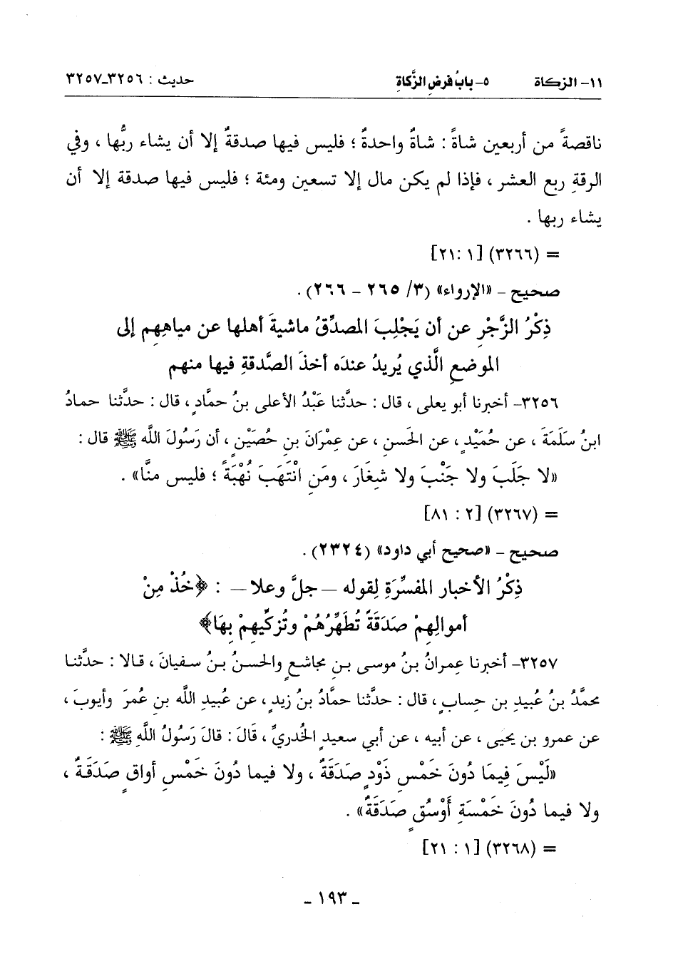 قَالَ أَبُو حَاتِمٍ ـ رَضِيَ اللَّهُ عَنْهُ ـ: هَذَا الْخَبَرُ يُبَيِّنُ بِأَنَّ الْمُرَادَ مِنْ قَوْلِهِ: {خُذْ من أموالهم صدقة تطهرهم} [براءة: 103] أَرَادَ بِهِ بَعْضَ الْمَالِ إِذِ اسْمُ الْمَالِ واقع على ما دون الخمسة مِنَ الذَّوْدِ وَالْخَمْسِ مِنَ الْأَوَاقِ وَالْخَمْسِ مِنَ الْأَوْسُقِ وَقَدْ نَفَى صَلَّى اللَّهُ عَلَيْهِ وَسَلَّمَ إيجاب الصدقة عن مادون الذي حدَّ.
