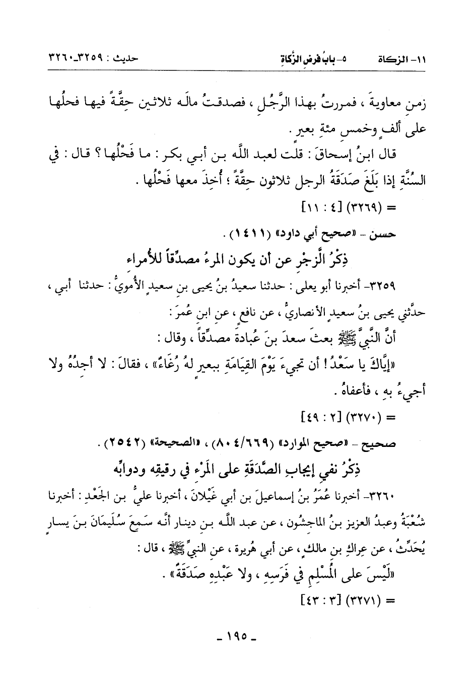 3259 - أَخْبَرَنَا أَبُو يَعْلَى حَدَّثَنَا سَعِيدُ بْنُ يَحْيَى بْنِ سَعِيدٍ الْأُمَوِيُّ حَدَّثَنَا أَبِي حَدَّثَنِي يَحْيَى بْنُ سَعِيدٍ الْأَنْصَارِيُّ عَنْ نَافِعٍ عَنِ ابْنِ عُمَرَ: