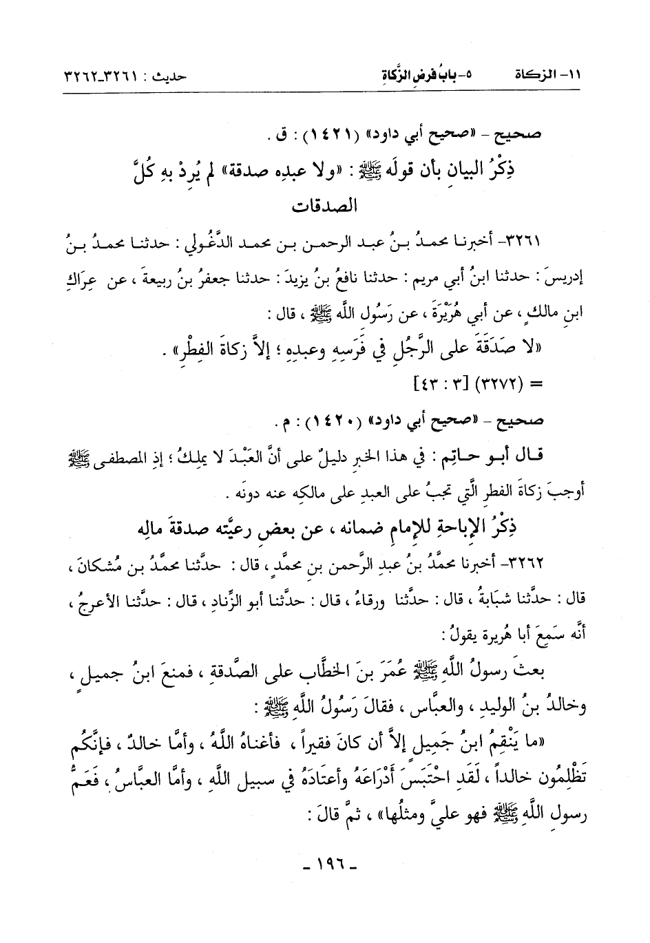 (مَا يَنْقِمُ ابْنُ جَمِيلٍ إِلَّا أَنْ كَانَ فَقِيرًا فَأَغْنَاهُ اللَّهُ وَأَمَّا خَالِدٌ فَإِنَّكُمْ تَظْلِمُونَ خَالِدًا لَقَدِ احْتَبَسَ أدرَاعَهُ وَأَعْتَادَهُ فِي سَبِيلِ اللَّهِ وَأَمَّا الْعَبَّاسُ فَعَمُّ رَسُولِ اللَّهِ صَلَّى اللَّهُ عَلَيْهِ وَسَلَّمَ فَهُوَ عَلَيَّ وَمِثْلُهَا) ثُمَّ قَالَ: -[197]-