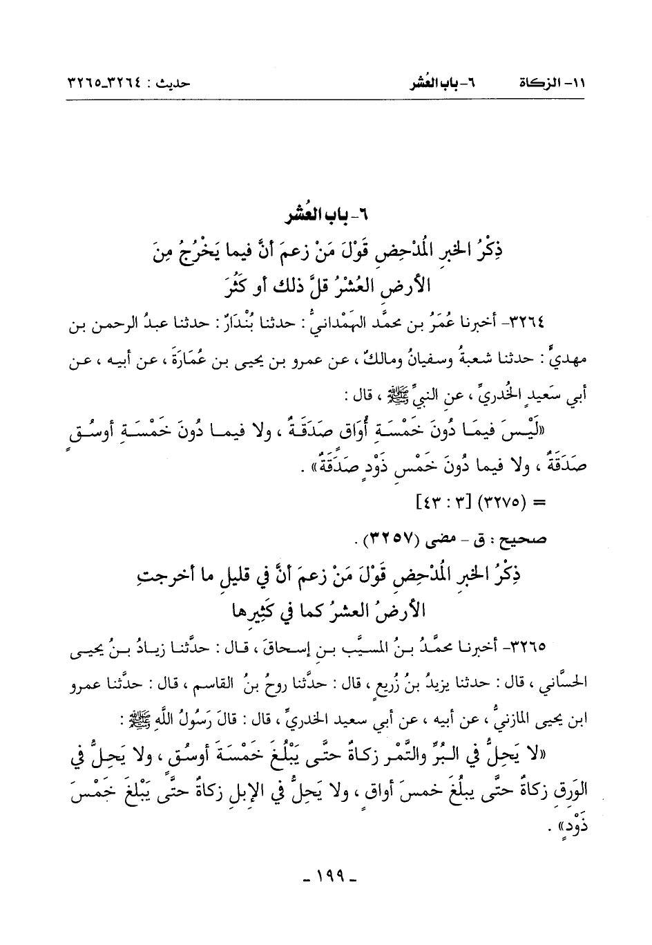 (لَا يَحِلُّ فِي البُرِّ وَالتَّمْرِ زكاةٌ حَتَّى يَبْلُغَ خَمْسَةَ أَوْسُقٍ وَلَا يَحِلُّ فِي الوَرِقِ زَكَاةٌ حَتَّى يَبْلُغَ خَمْسَ أَوَاقٍ وَلَا يَحِلُّ فِي الْإِبِلِ زَكَاةٌ حَتَّى يَبْلُغَ خَمْسَ ذَوْدٍ) -[200]-