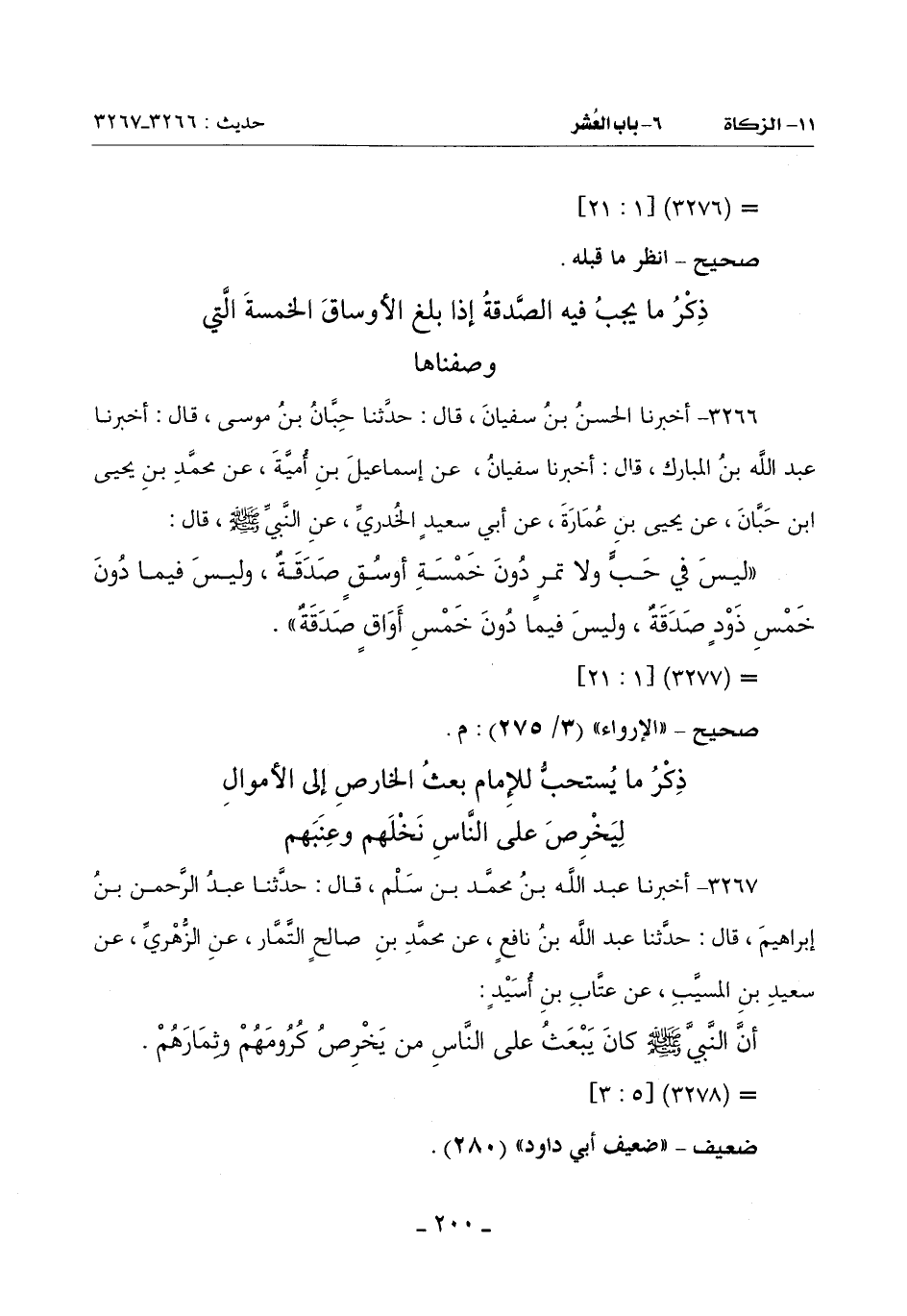 (لَيْسَ فِي حَبٍّ وَلَا تَمْرٍ دُونَ خَمْسَةِ أَوْسُقٍ صَدَقَةٌ وَلَيْسَ فِيمَا دُونَ خَمْسِ ذودٍ صَدَقَةٌ وَلَيْسَ فِيمَا دُونَ خَمْسِ أواقٍ صدقة)