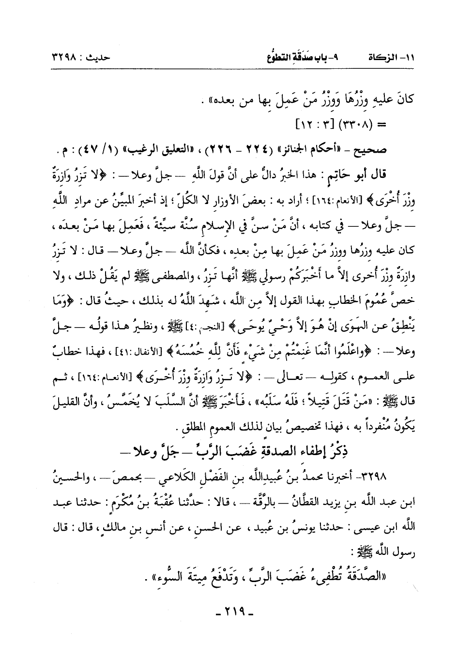 (الصدقة تُطْفِىءُ غَضَبَ الرَّبِّ وتدفعُ مِيتَةَ السَّوءِ) -[220]-