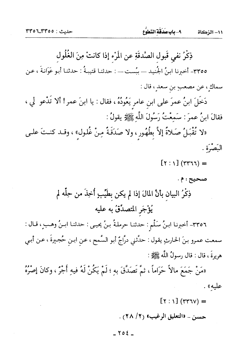 (لَا تُقْبَلُ صَلَاةٌ إِلَّا بِطَهُورٍ وَلَا صَدَقَةٌ مِنْ غُلُولٍ) وقد كنتَ على البصرة