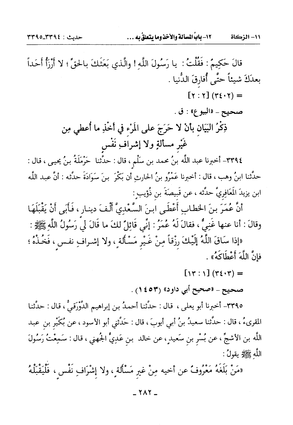 قَالَ أَبُو حَاتِمٍ ـ رَضِيَ اللَّهُ عَنْهُ ـ: هَذَا الْأَمْرُ الَّذِي أُمرنا بِاسْتِعْمَالِهِ هُوَ أَخْذُ مَا أُعْطِيَ الْمَرْءُ وَالشَّيْئَانِ الْمَعْلُومَانِ الَّذِي أُبِيحَ لَهُ ذَلِكَ عِنْدَ عَدَمِهِمَا هُوَ الْمَسْأَلَةُ وَإِشْرَافُ النَّفْسِ فَإِنْ وُجِدَ أَحَدُهُمَا فِي الْغَنِيِّ الْمُسْتَقِلِّ بِمَا عِنْدَهُ زُجِرَ عَنْ أَخْذِ مَا أُعطي دُونَ الْفُقَرَاءِ الْمُضْطَرِّينَ