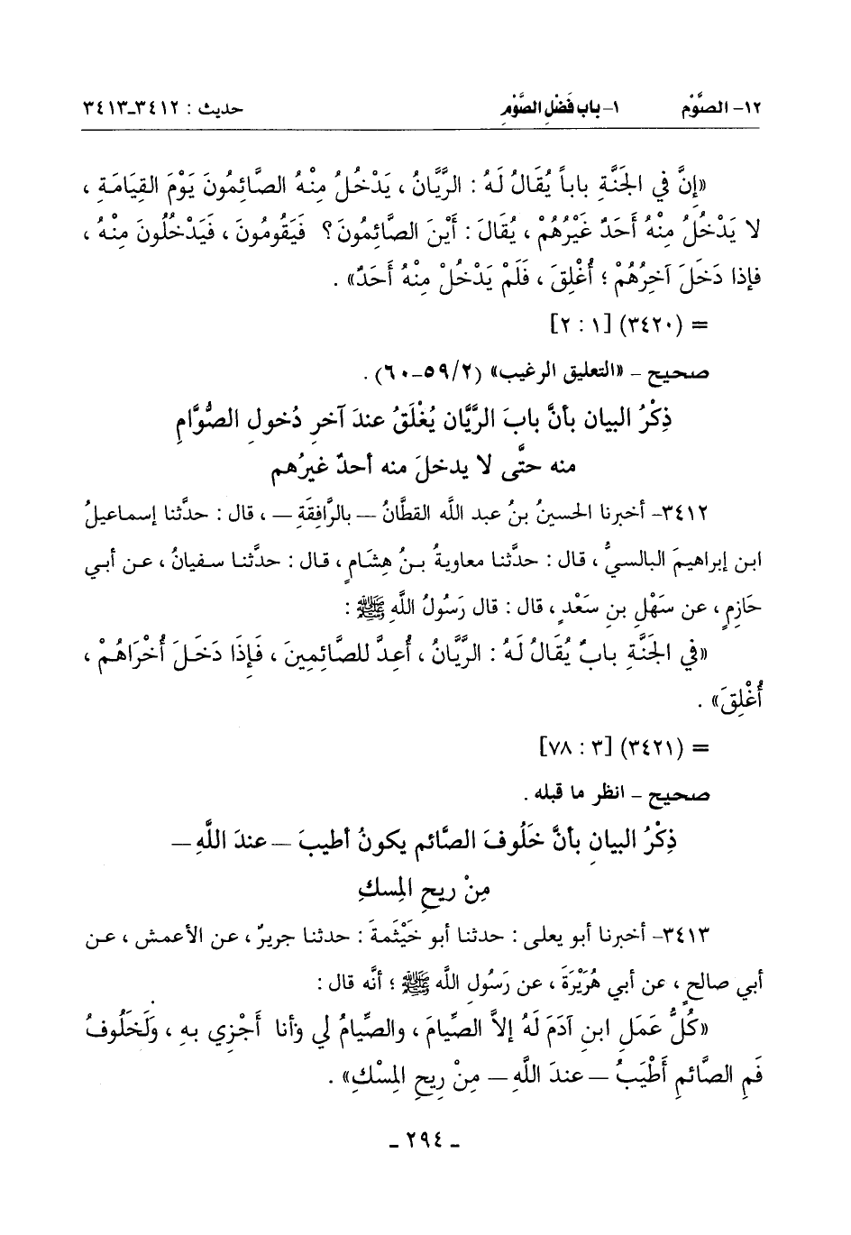(كُلُّ عَمَلِ ابْنِ آدَمَ لَهُ إِلَّا الصِّيَامَ وَالصِّيَامُ لِي وَأَنَا أجزي به ولخلوف فم الصائم أطيب عن الله من ريح المسك) -[295]-