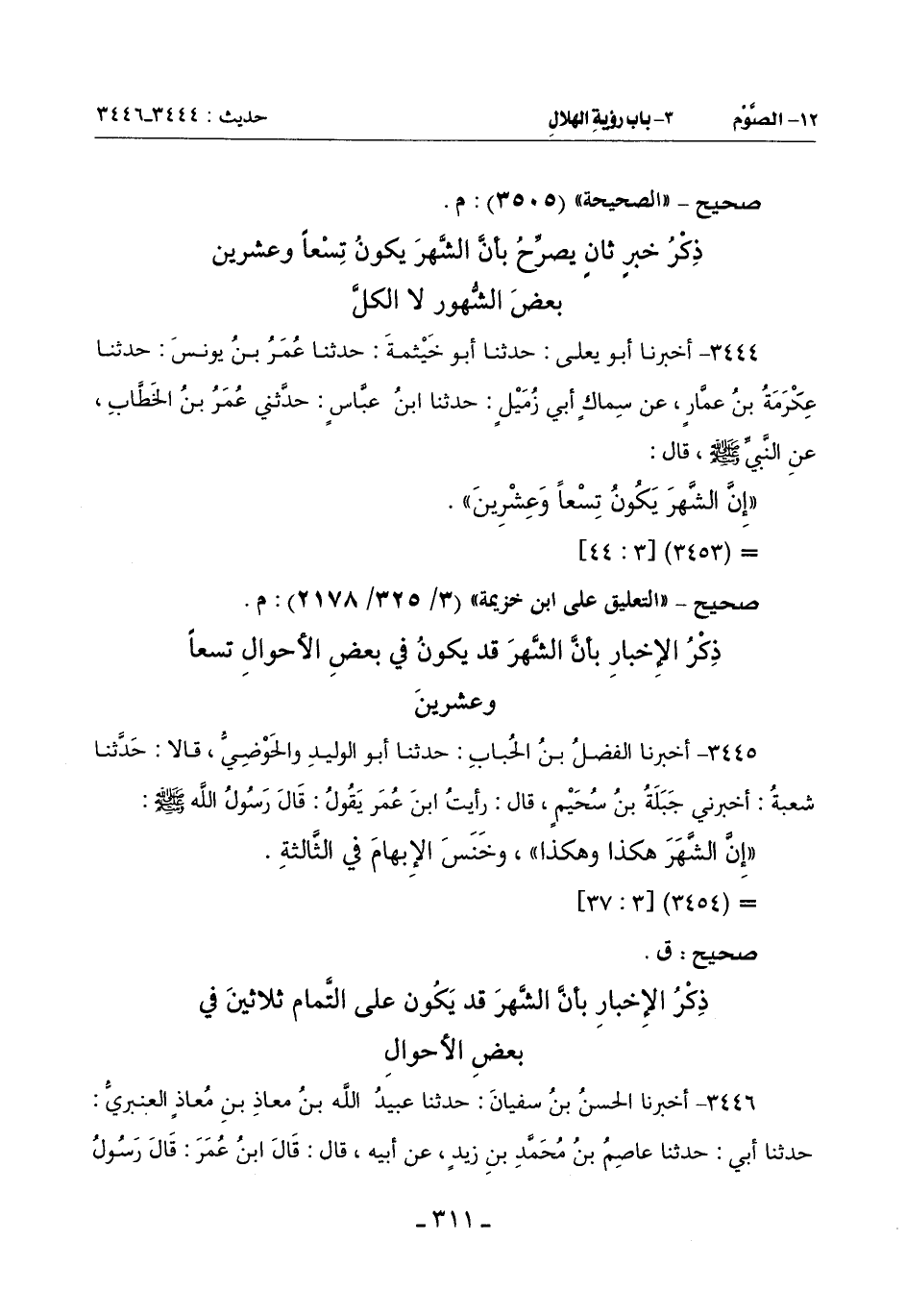 ذِكْرُ خَبَرٍ ثَانٍ يُصَرِّحُ بِأَنَّ الشَّهْرَ يَكُونُ تِسْعًا وَعِشْرِينَ بَعْضَ الشُّهُورِ لَا الْكَلَّ