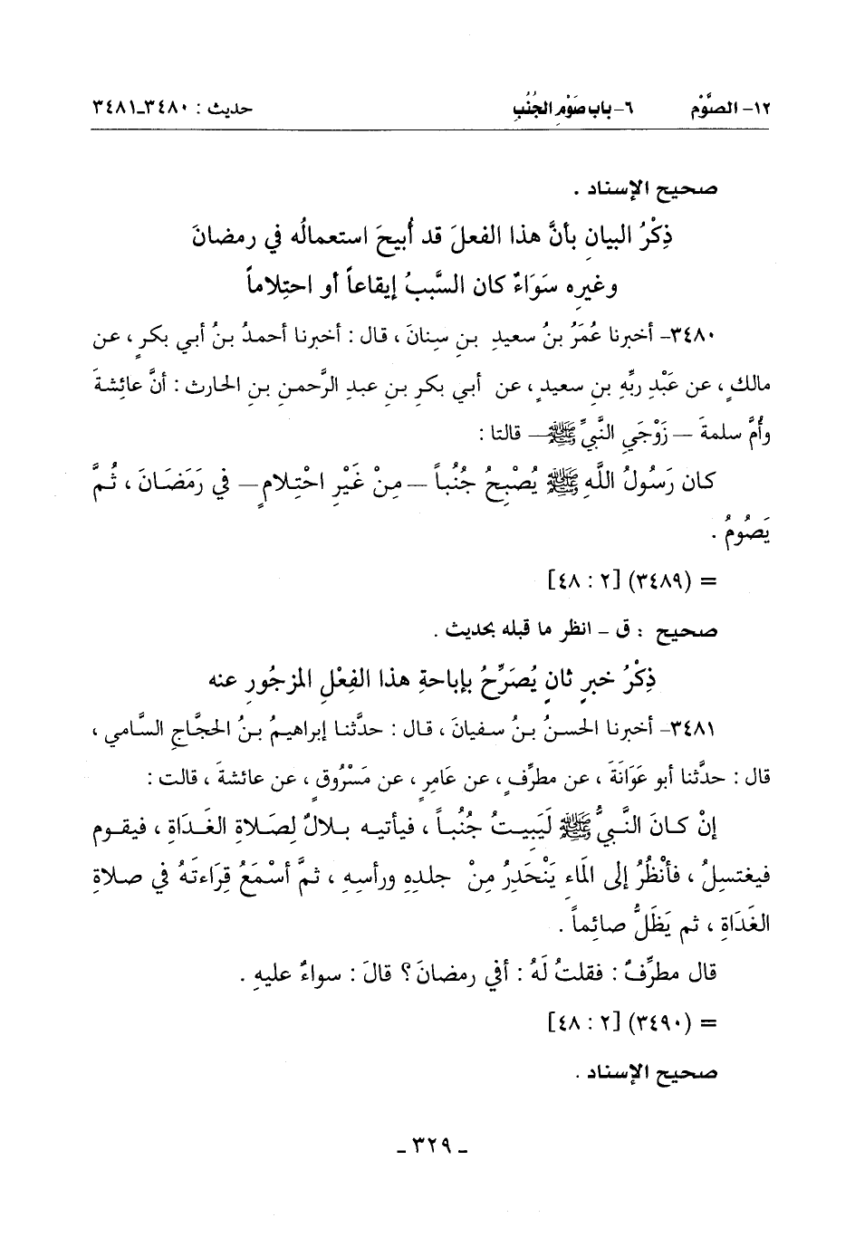 3481 - أَخْبَرَنَا الْحَسَنُ بْنُ سُفْيَانَ قَالَ: حَدَّثَنَا إِبْرَاهِيمُ بْنُ الْحَجَّاجِ السَّامِيُّ قَالَ: حَدَّثَنَا أَبُو عَوَانَةَ عَنْ مطرِّفٍ عَنْ عَامِرٍ عَنْ مَسْرُوقٍ عَنْ عَائِشَةَ قَالَتْ:
