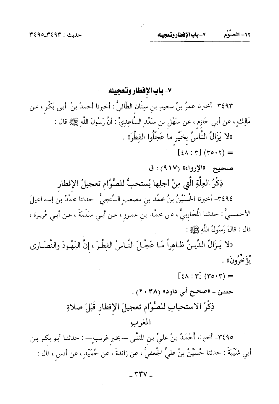 (لَا يَزَالُ الدِّينُ ظَاهِرًا مَا عَجَّلَ النَّاسُ الْفِطْرَ إِنَّ الْيَهُودَ والنصارى يُؤَخِّرُونَ)