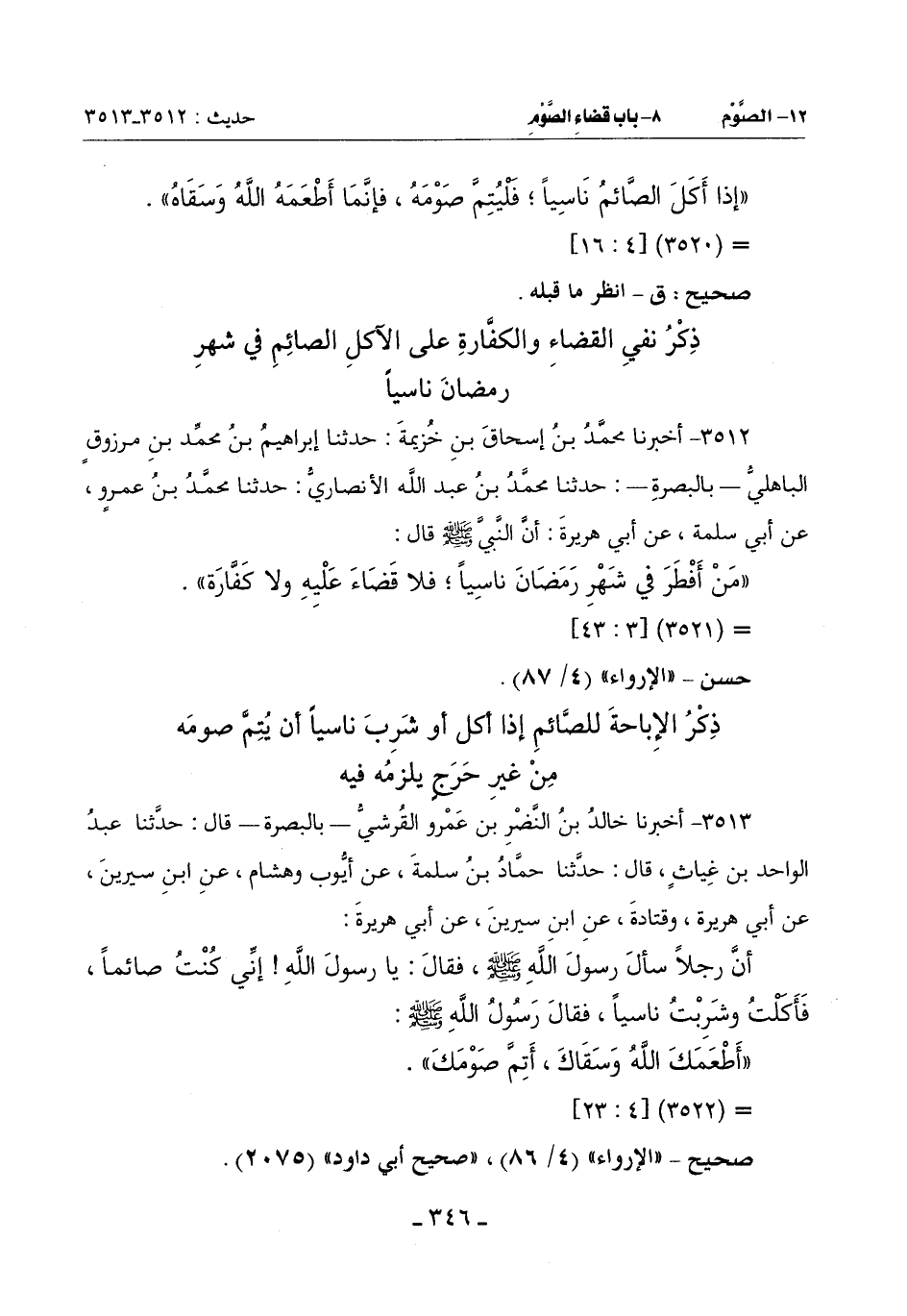 3512 - أَخْبَرَنَا مُحَمَّدُ بْنُ إِسْحَاقَ بْنِ خُزَيْمَةَ حَدَّثَنَا إِبْرَاهِيمُ بْنُ مُحَمَّدِ بْنِ مَرْزُوقٍ الْبَاهِلِيُّ بِالْبَصْرَةَ حَدَّثَنَا مُحَمَّدُ بْنُ عَبْدِ اللَّهِ الْأَنْصَارِيُّ حَدَّثَنَا مُحَمَّدُ بْنُ عَمْرٍو عَنْ أَبِي سَلَمَةَ عَنْ أَبِي هُرَيْرَةَ أَنَّ النَّبِيَّ صَلَّى اللَّهُ عَلَيْهِ وَسَلَّمَ قَالَ: