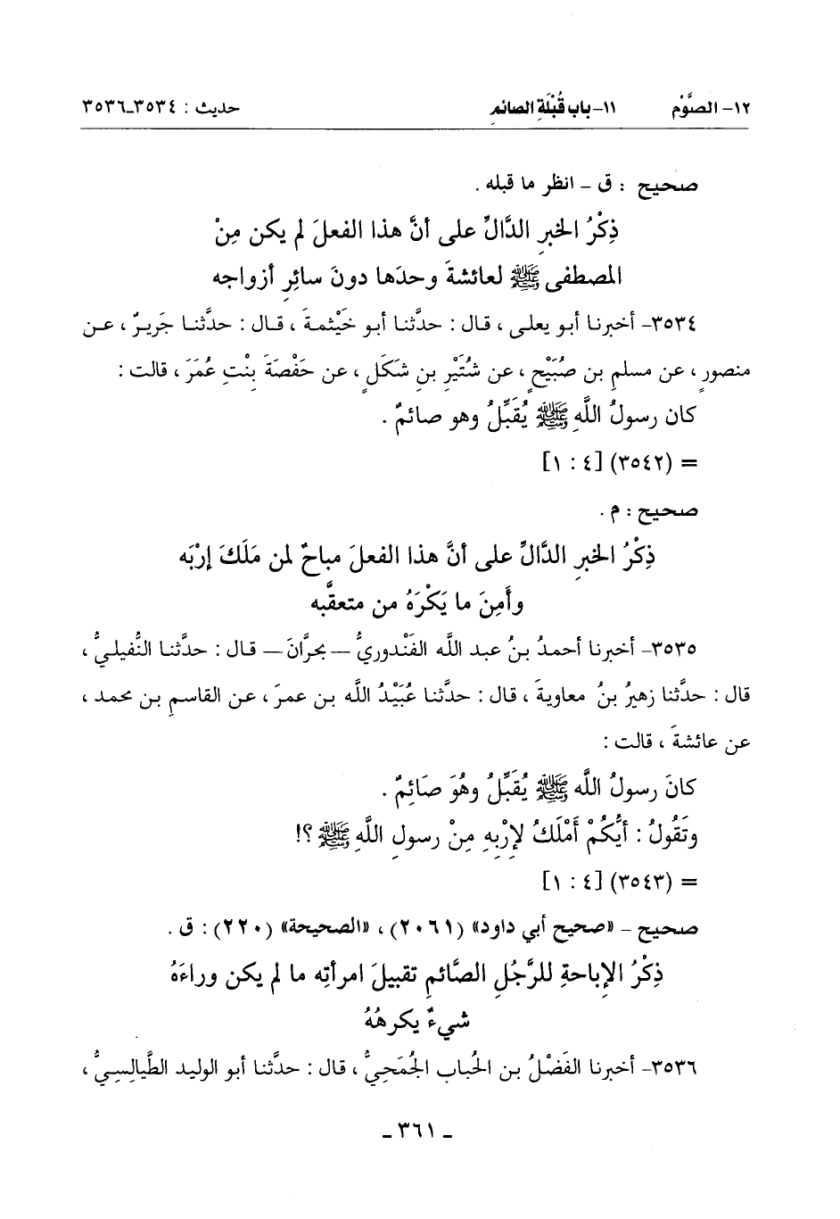 3534 - أَخْبَرَنَا أَبُو يَعْلَى قَالَ: حَدَّثَنَا أَبُو خَيْثَمَةَ قال: حدثنا جرير عن منصور عن مُسْلِمِ بْنِ صُبَيْحٍ عَنْ شُتَيْرِ بْنِ شَكَلٍ: عَنْ حَفْصَةَ بِنْتِ عُمَرَ قَالَتْ: