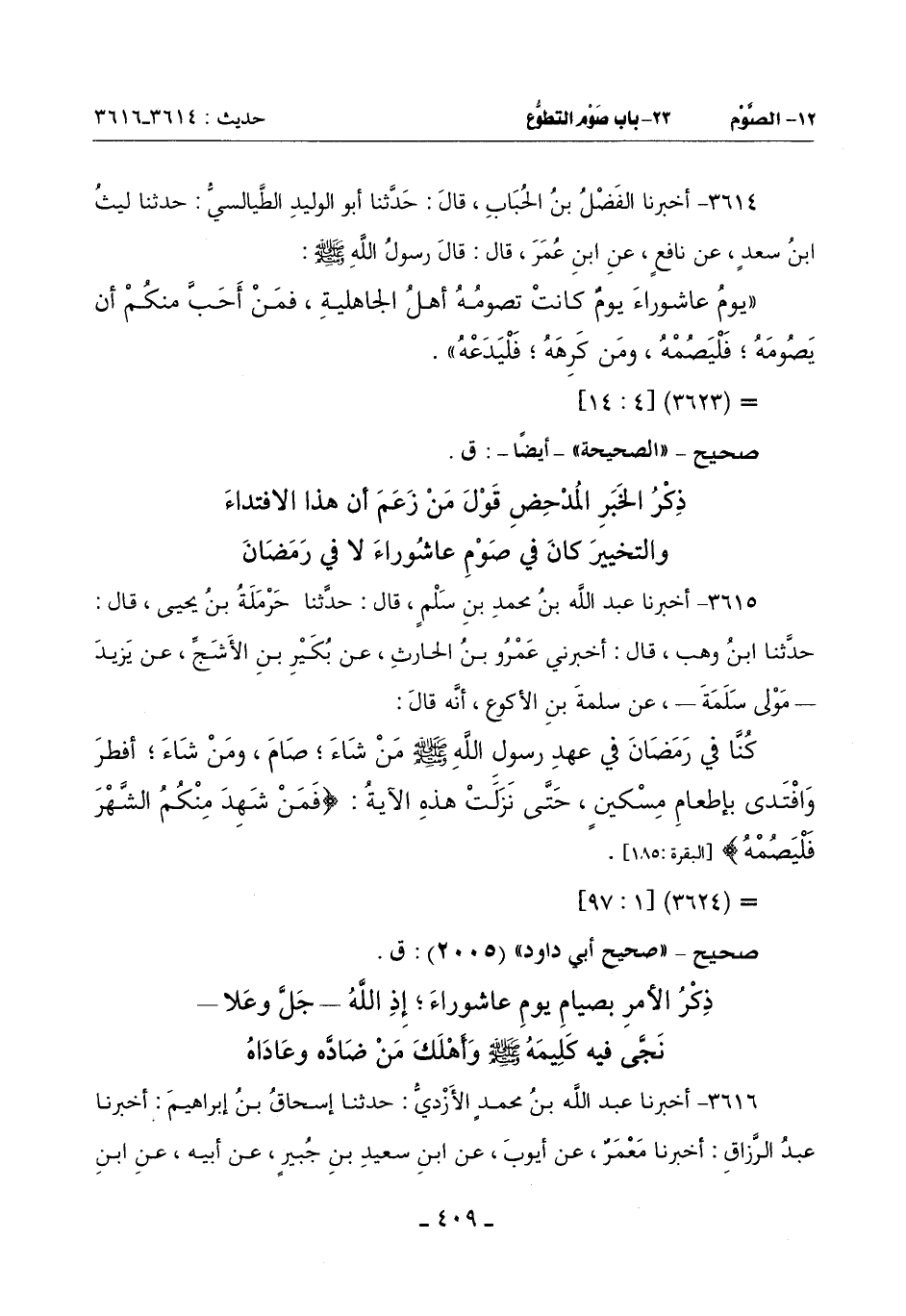 ذِكْرُ الْأَمْرِ بِصِيَامِ يَوْمِ عَاشُورَاءَ إِذِ اللَّهُ جَلَّ وَعَلَا نَجَّى فِيهِ كَلِيمَهُ صَلَّى اللَّهُ عَلَيْهِ وَسَلَّمَ وَأَهْلَكَ مَنْ ضادَّه وَعَادَاهُ
