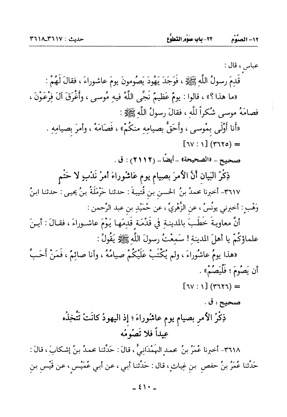 ذِكْرُ الْبَيَانِ أَنَّ الْأَمْرَ بِصِيَامِ يَوْمِ عَاشُورَاءَ أمر ندب لا حتم