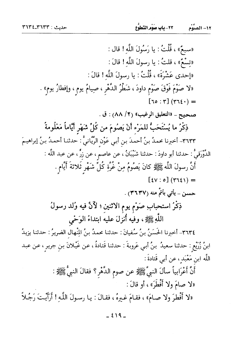 (ذَاكَ صَوْمُ الدَّهْرِ) قَالَ: أَرَأَيْتَ رَجُلًا يَصُومُ يَوْمَ الِاثْنَيْنِ؟ قَالَ: