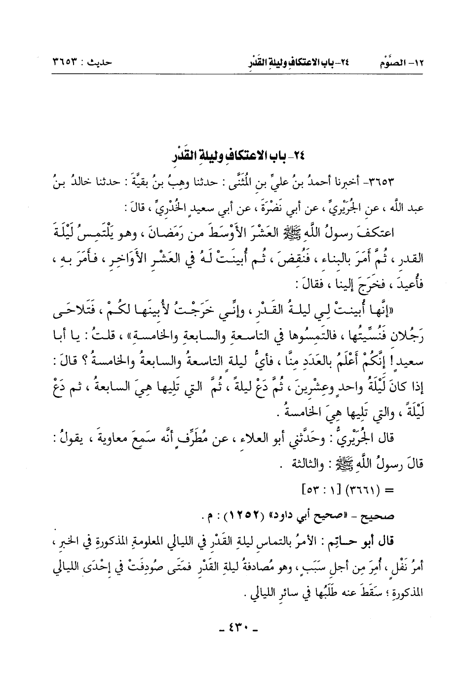 24 - بَابُ الِاعْتِكَافِ وَلَيْلَةِ الْقَدْرِ