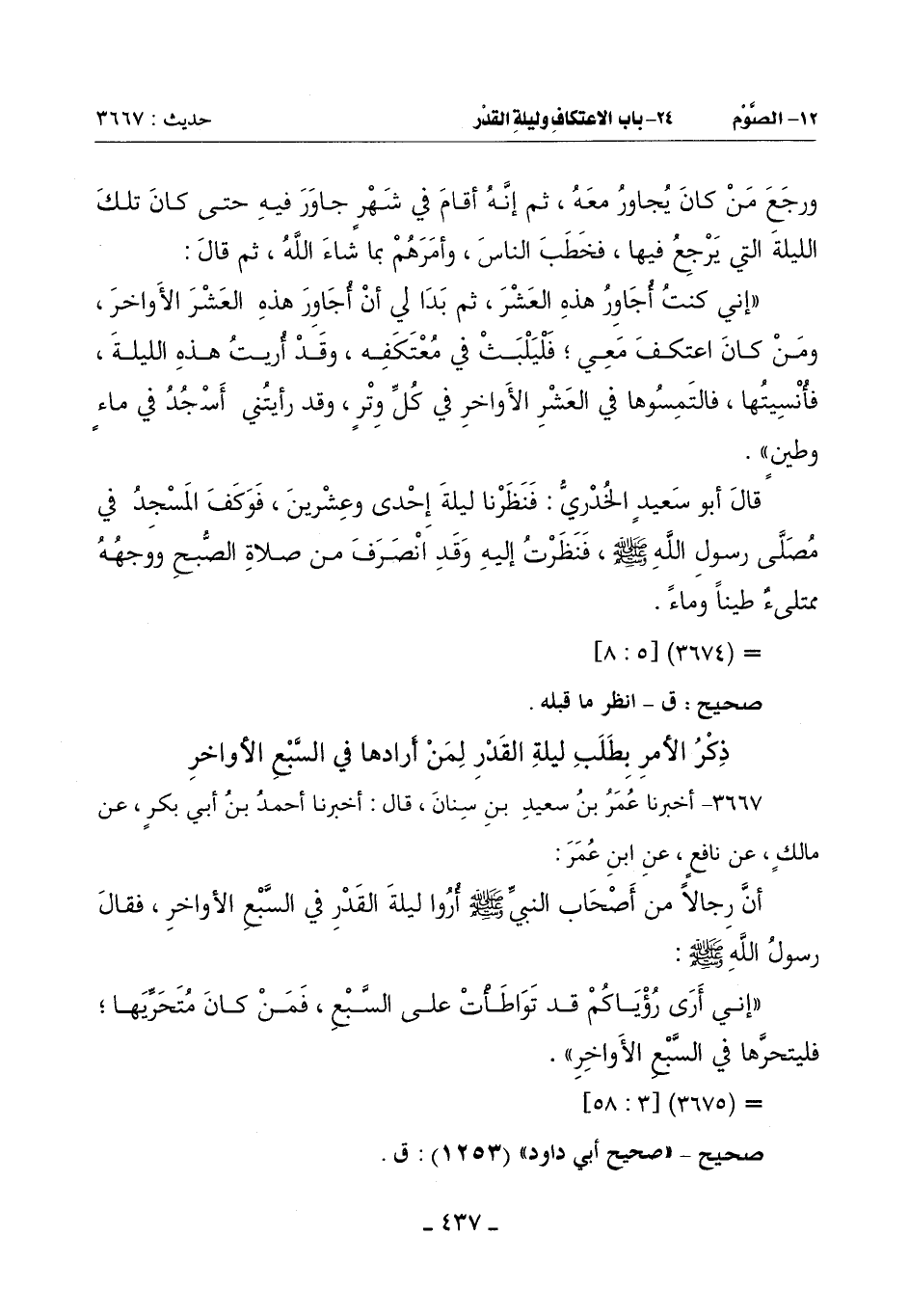 (أني أَرَى رُؤْيَاكُمْ قَدْ تَوَاطَأَتْ عَلَى السَّبْعِ فَمَنْ كان متحرِّيها فليتحرَّها في السبع الأواخر).