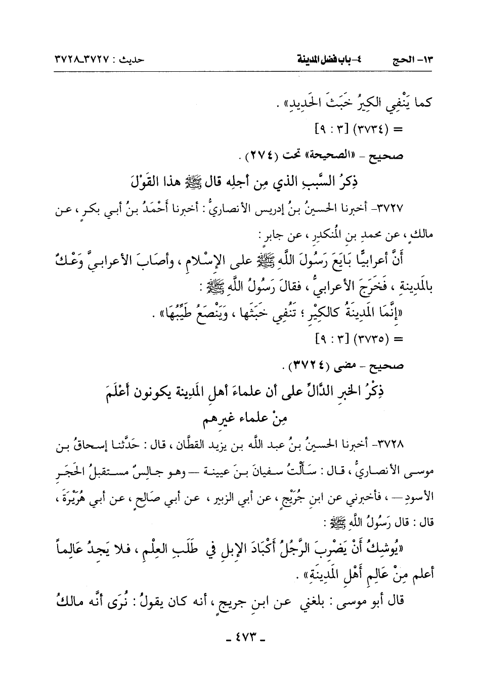 ذِكْرُ الْخَبَرِ الدَّالِّ عَلَى أَنَّ عُلَمَاءَ أَهْلِ الْمَدِينَةِ يَكُونُونَ أَعْلَمَ مِنْ عُلَمَاءِ غَيْرِهِمْ