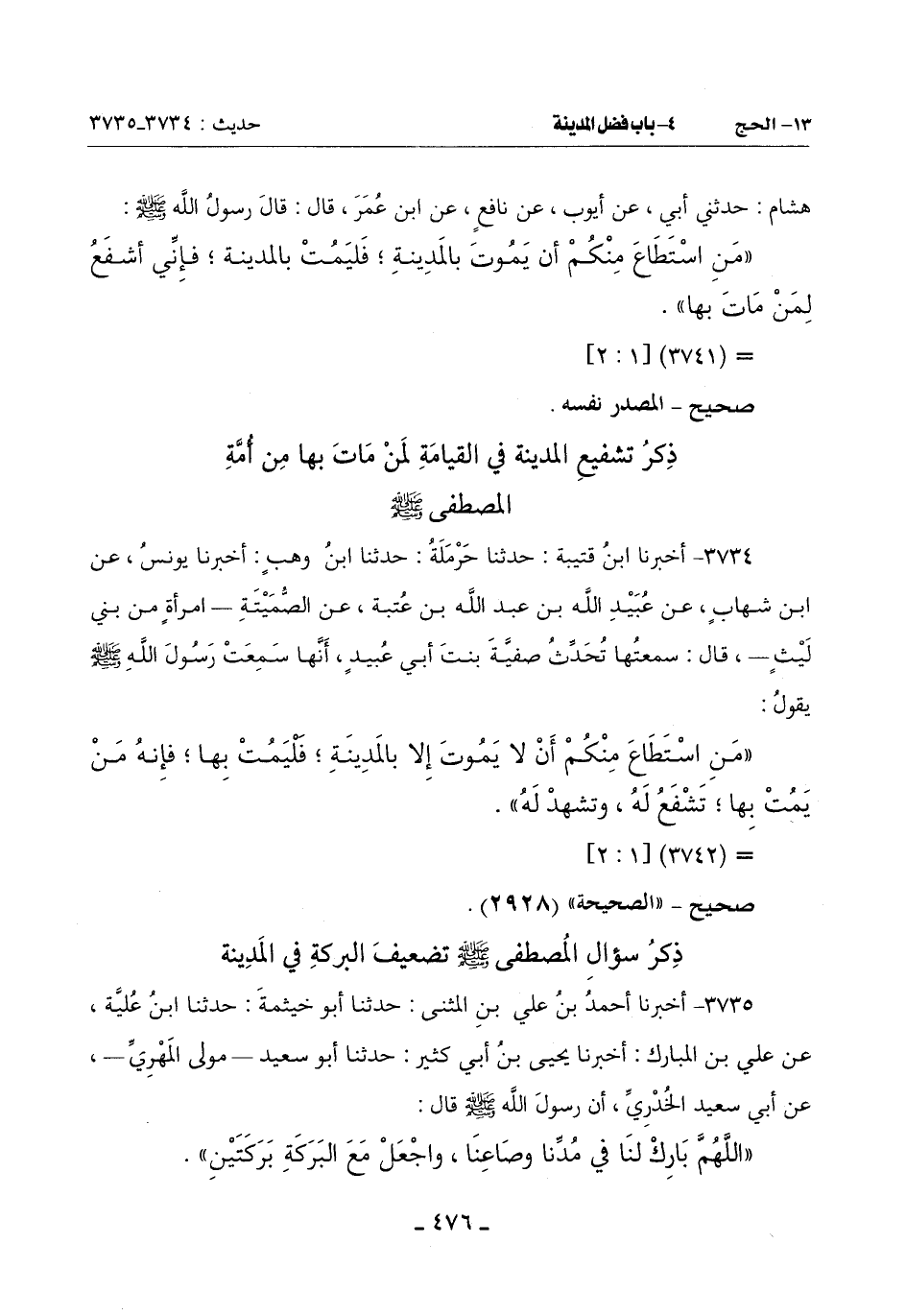 ذِكْرُ تَشْفِيعِ الْمَدِينَةِ فِي الْقِيَامَةِ لِمَنْ مَاتَ بِهَا مِنْ أُمَّةِ الْمُصْطَفَى صَلَّى اللَّهُ عَلَيْهِ وَسَلَّمَ