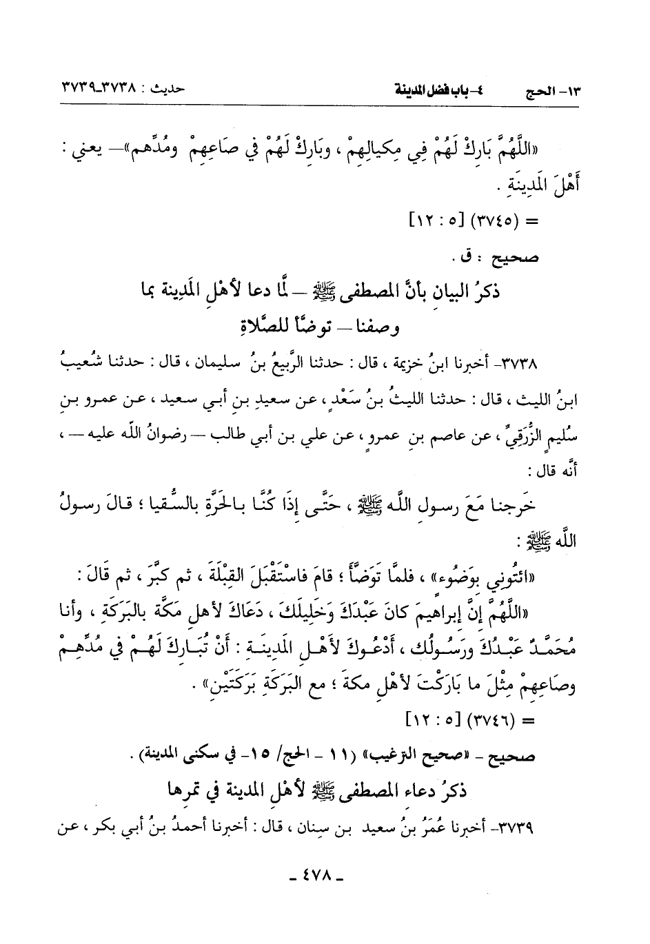 ذكر البيان بأن المصطفى لَمَّا دَعَا لِأَهْلِ الْمَدِينَةِ بِمَا وَصَفْنَا تَوَضَّأَ للصلاة