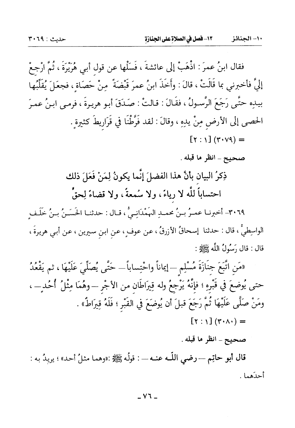 قَالَ أَبُو حَاتِمٍ ـ رَضِيَ اللَّهُ عَنْهُ ـ: قَوْلُهُ صَلَّى اللَّهُ عَلَيْهِ وَسَلَّمَ: وَهُمَا مِثْلُ أُحُدٍ يُرِيدُ بِهِ أَحَدَهُمَا