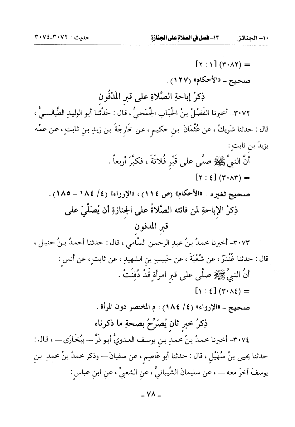 3074 - أخبرنا مُحَمَّدِ بْنِ يُوسُفَ الْعَدَوِيُّ أَبُو ذَرٍ بِبُخَارَى قَالَ: حَدَّثَنَا يَحْيَى بْنُ سُهَيْلٍ قَالَ: حَدَّثَنَا أَبُو عَاصِمٍ عَنْ سُفْيَانَ - وَذَكَرَ مُحَمَّدُ بْنُ مُحَمَّدِ بْنِ يُوسُفَ آخَرُ مَعَهُ - عَنْ سُلَيْمَانَ الشَّيْبَانِيِّ عَنِ الشَّعْبِيِّ عَنِ ابْنِ عَبَّاسٍ: -[79]-