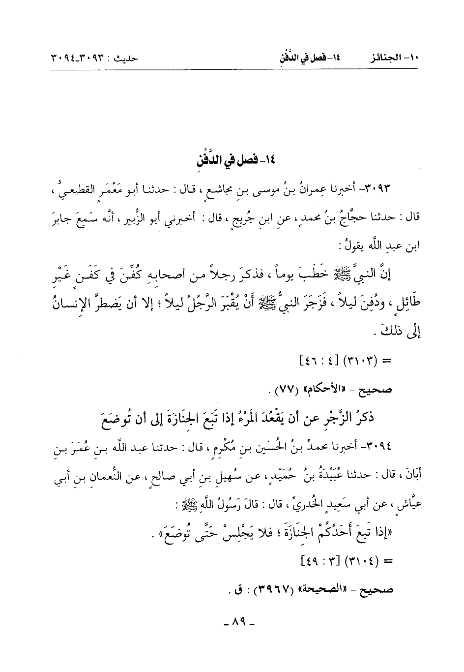 3093 - أَخْبَرَنَا عِمْرَانُ بْنُ مُوسَى بْنِ مُجَاشِعٍ قَالَ: حدثنا أبو معمر القطيعي قَالَ: حَدَّثَنَا حَجَّاجُ بْنُ مُحَمَّدٍ عَنِ ابْنِ جريح قَالَ: أَخْبَرَنِي أَبُو الزُّبَيْرِ أَنَّهُ سَمِعَ جَابِرَ بْنَ عَبْدِ اللَّهِ يَقُولُ: