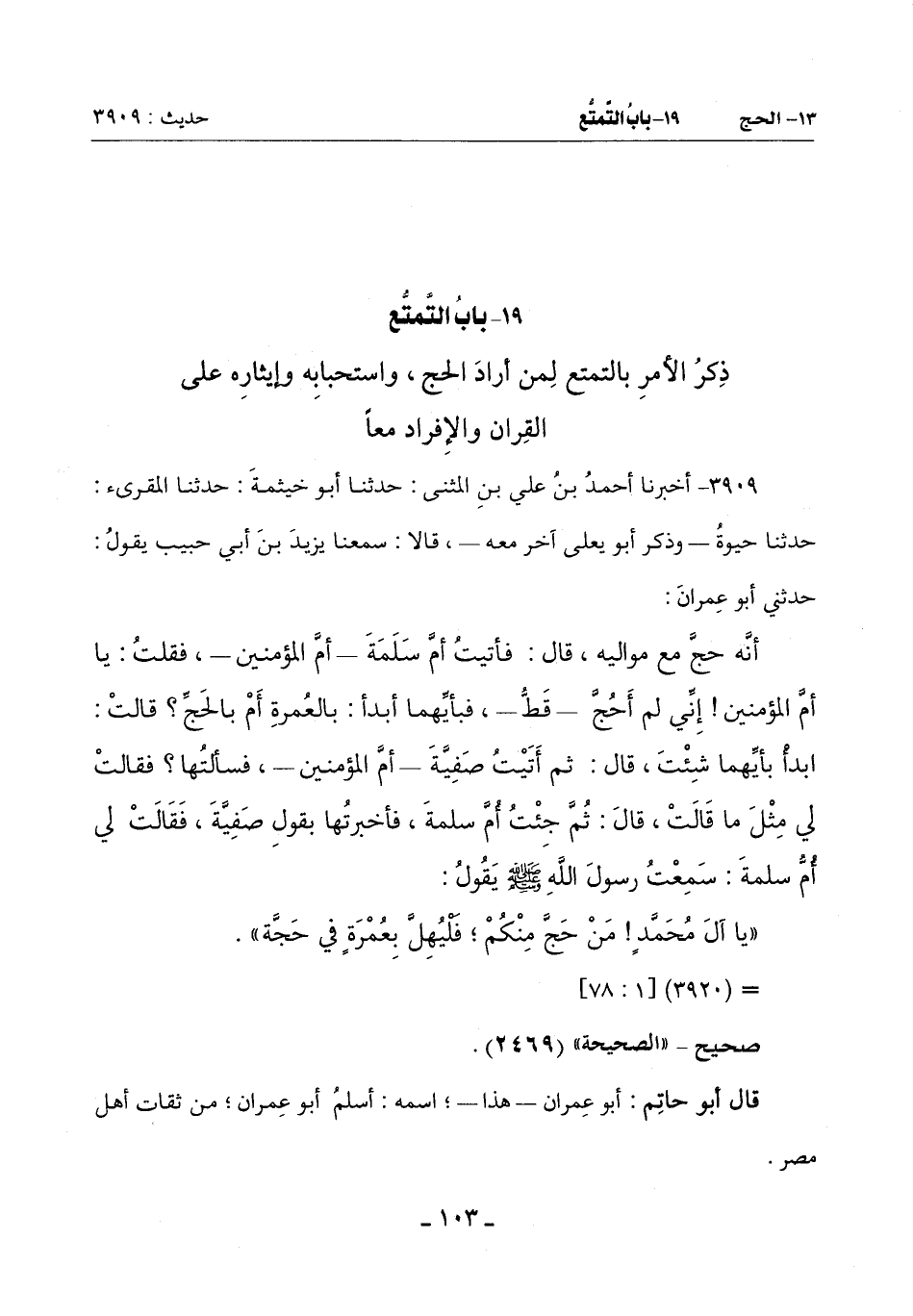 ذِكْرُ الْأَمْرِ بِالتَّمَتُّعِ لِمَنْ أَرَادَ الْحَجَّ وَاسْتِحْبَابِهِ وَإِيثَارِهِ عَلَى الْقِرَانِ وَالْإِفْرَادِ مَعًا