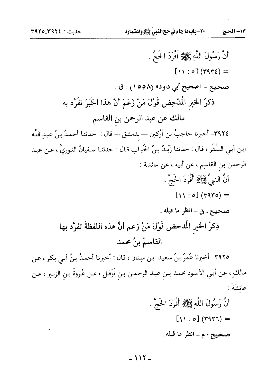 أَنَّ النَّبِيَّ صَلَّى اللَّهُ عَلَيْهِ وسلم أفرد الحج