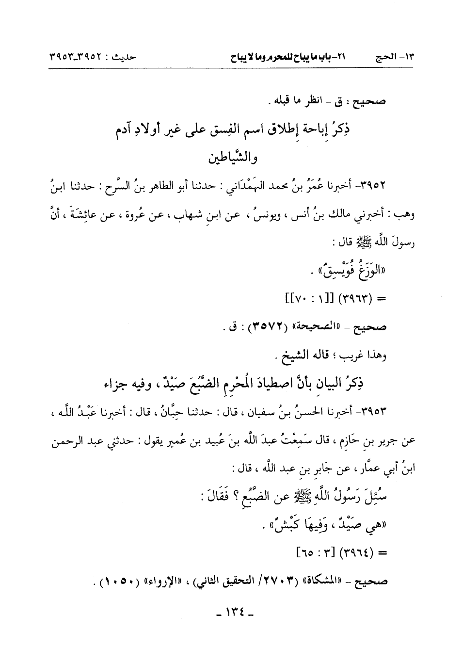 3952 - أَخْبَرَنَا عُمَرُ بْنُ مُحَمَّدٍ الْهَمْدَانِيُّ حَدَّثَنَا أَبُو الطَّاهِرِ بْنُ السَّرْحِ حَدَّثَنَا ابْنُ وَهْبٍ أَخْبَرَنِي مَالِكُ بْنُ أَنَسٍ وَيُونُسُ عَنِ ابْنِ شِهَابٍ عَنْ عُرْوَةَ: عَنْ عَائِشَةَ أَنَّ رَسُولَ اللَّهِ صَلَّى اللَّهُ عَلَيْهِ وَسَلَّمَ قَالَ: