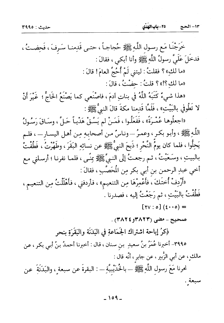 3995 - أَخْبَرَنَا عُمَرُ بْنُ سَعِيدِ بْنِ سِنَانٍ قَالَ: أَخْبَرَنَا أَحْمَدُ بْنُ أَبِي بَكْرٍ عَنْ مَالِكٍ عَنْ أَبِي الزُّبَيْرِ عَنْ جَابِرٍ أَنَّهُ قَالَ: